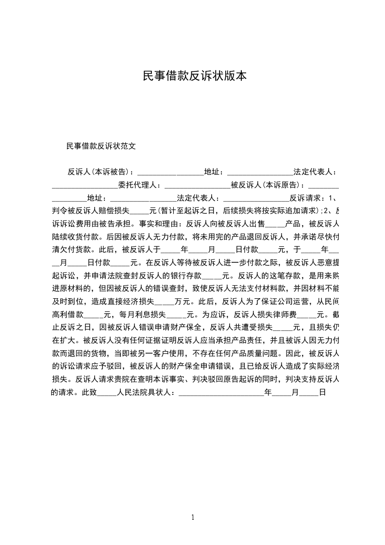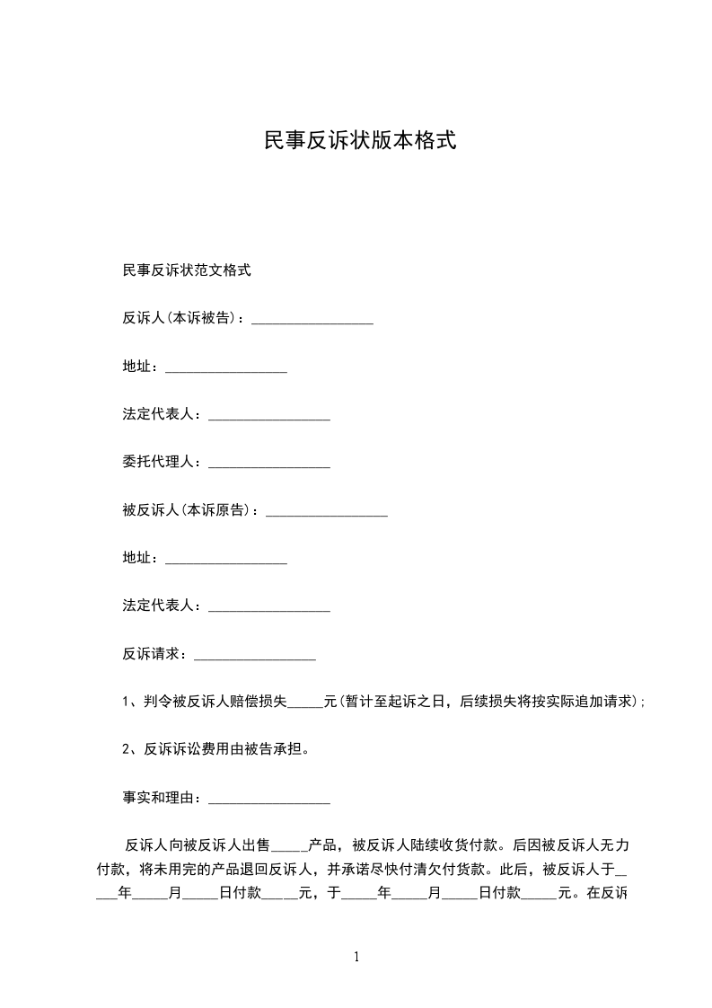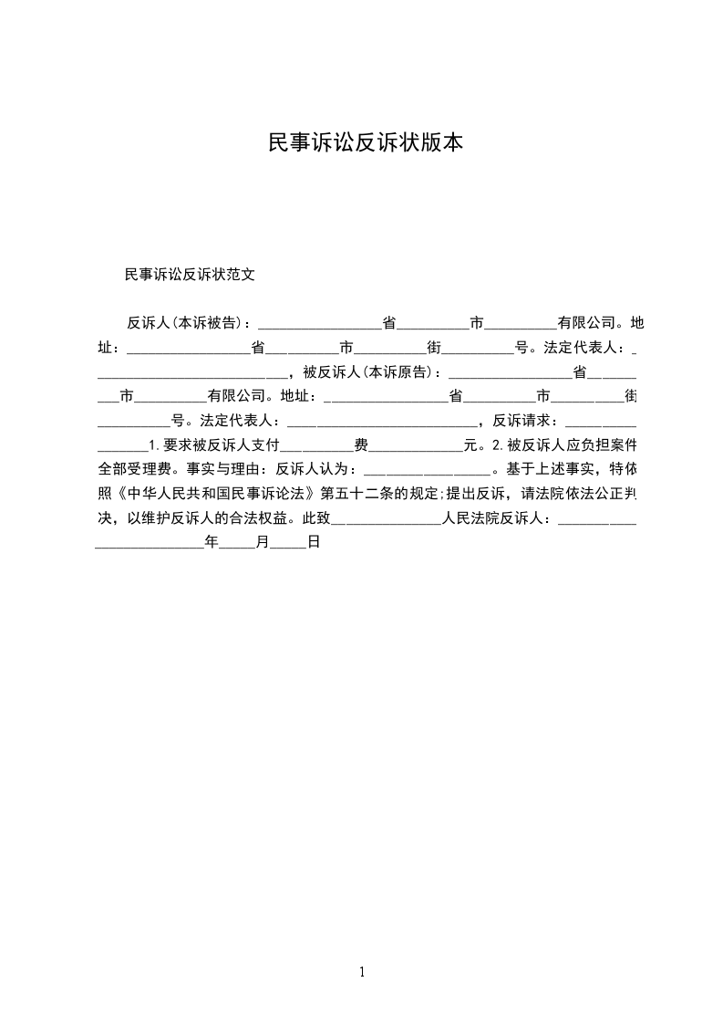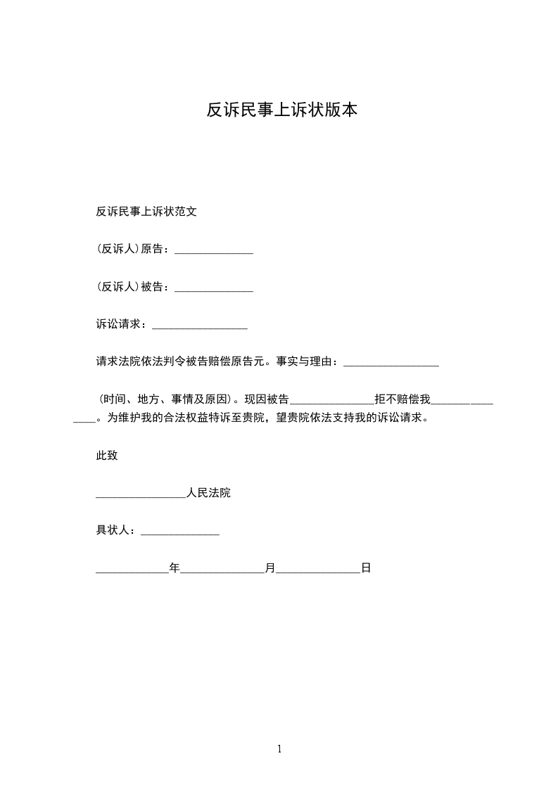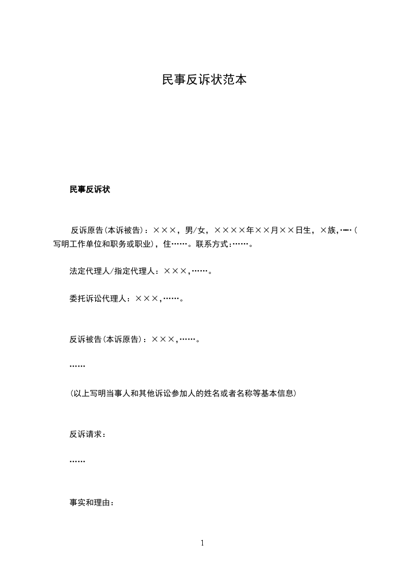 民事反诉状