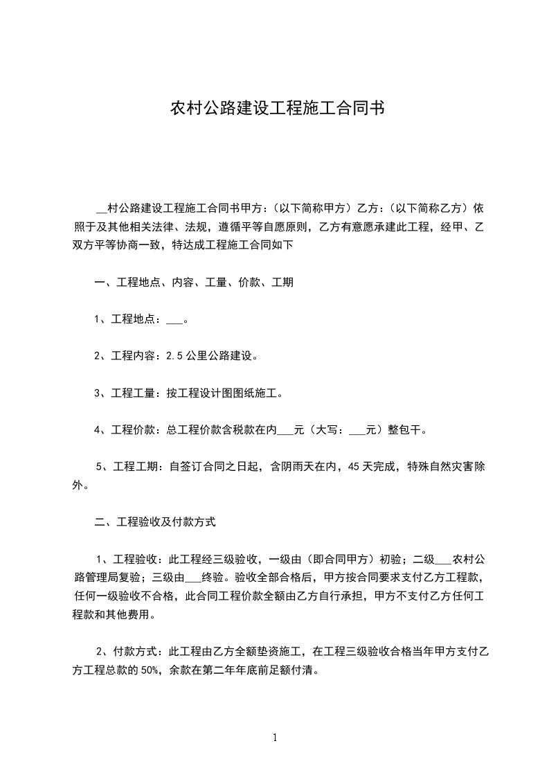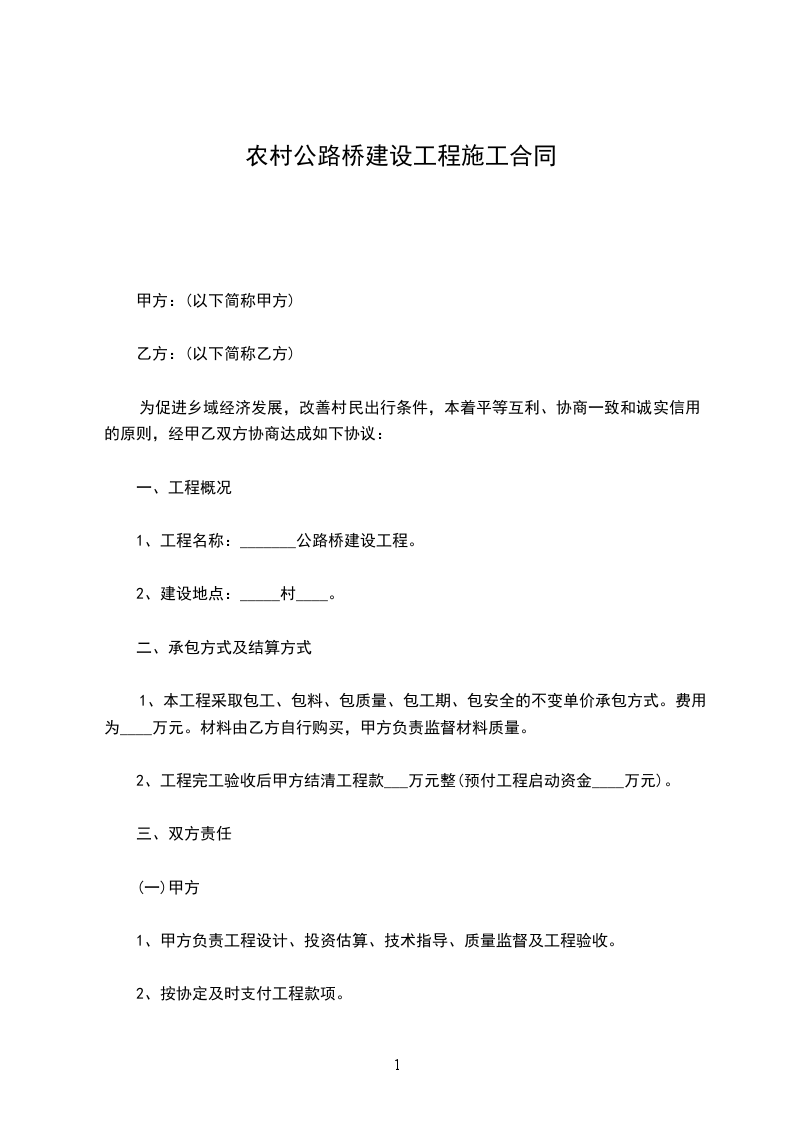 1、工程名称:_______公路桥建设工程。