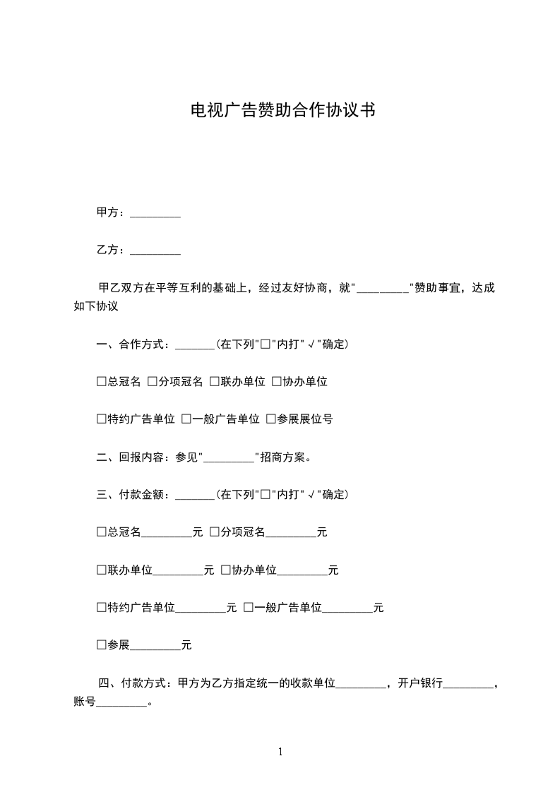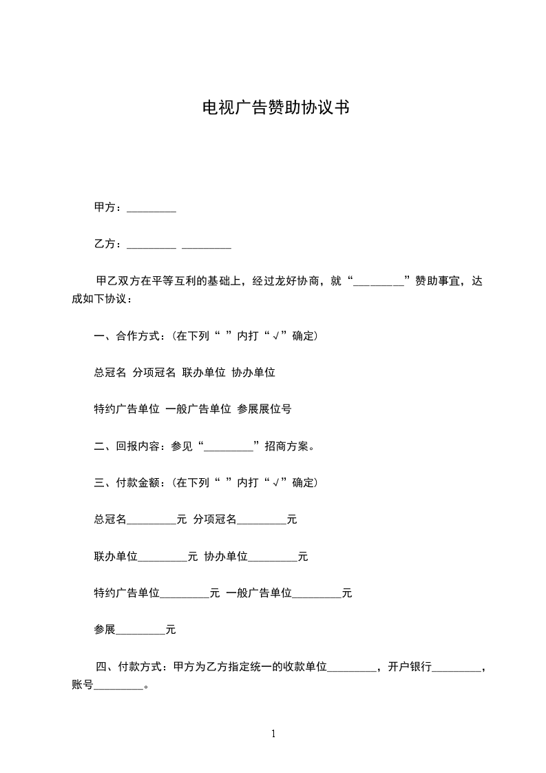 甲、乙双方就有关《_____________________》栏目的广告赞助等合作事项,经友好协商达成如下协议: