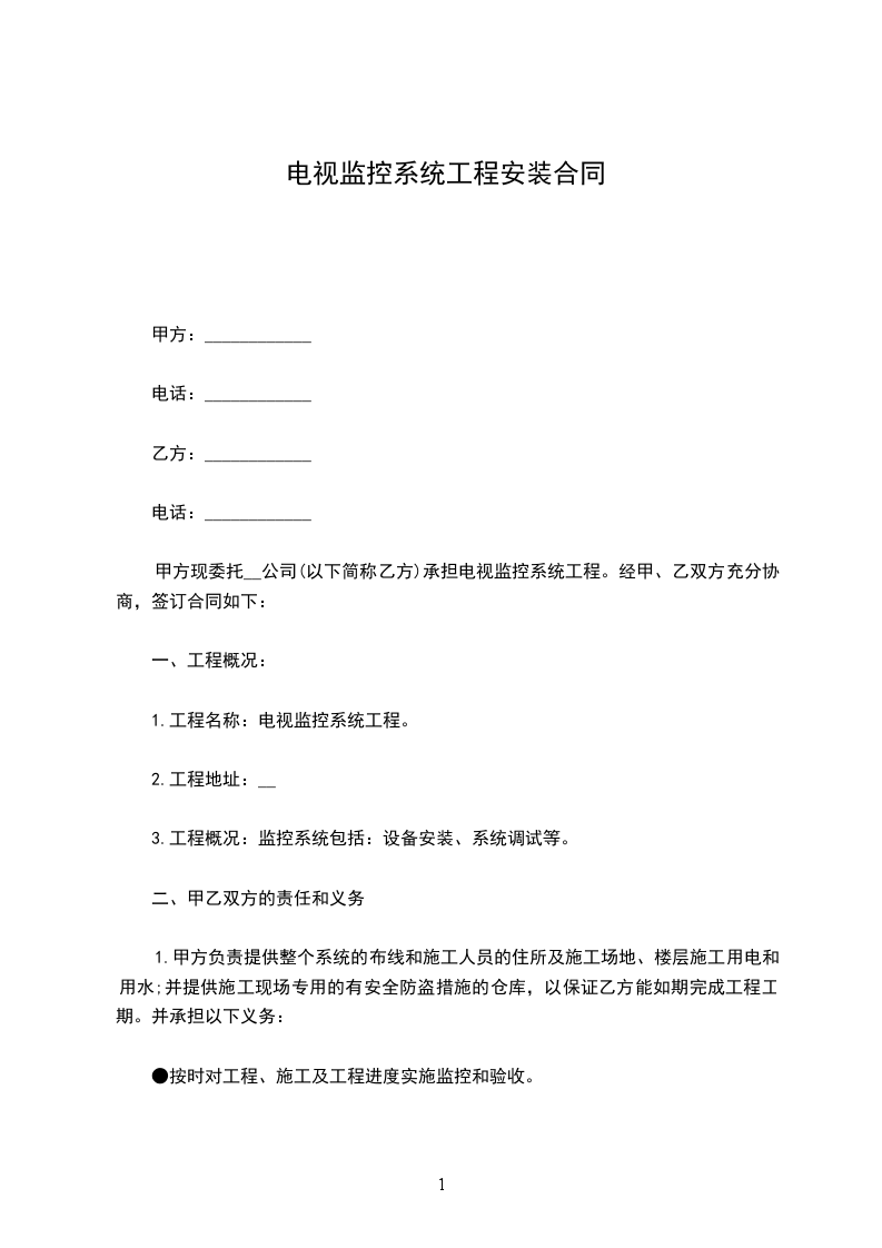 甲方现委托__公司(以下简称乙方)承担电视监控系统工程。经甲、乙双方充分协商,签订合同如下: