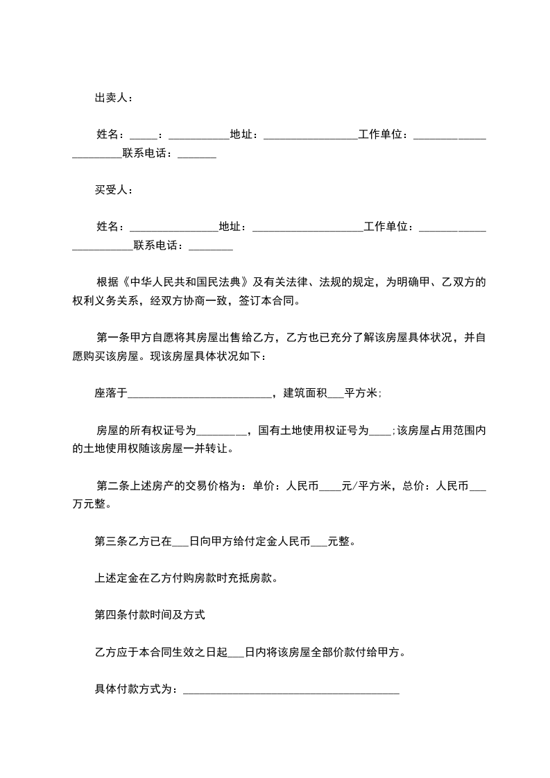 第一条甲方自愿将其房屋出售给乙方,乙方也已充分了解该房屋具体状况,并自愿买受该房屋。该房屋具体状况如下: