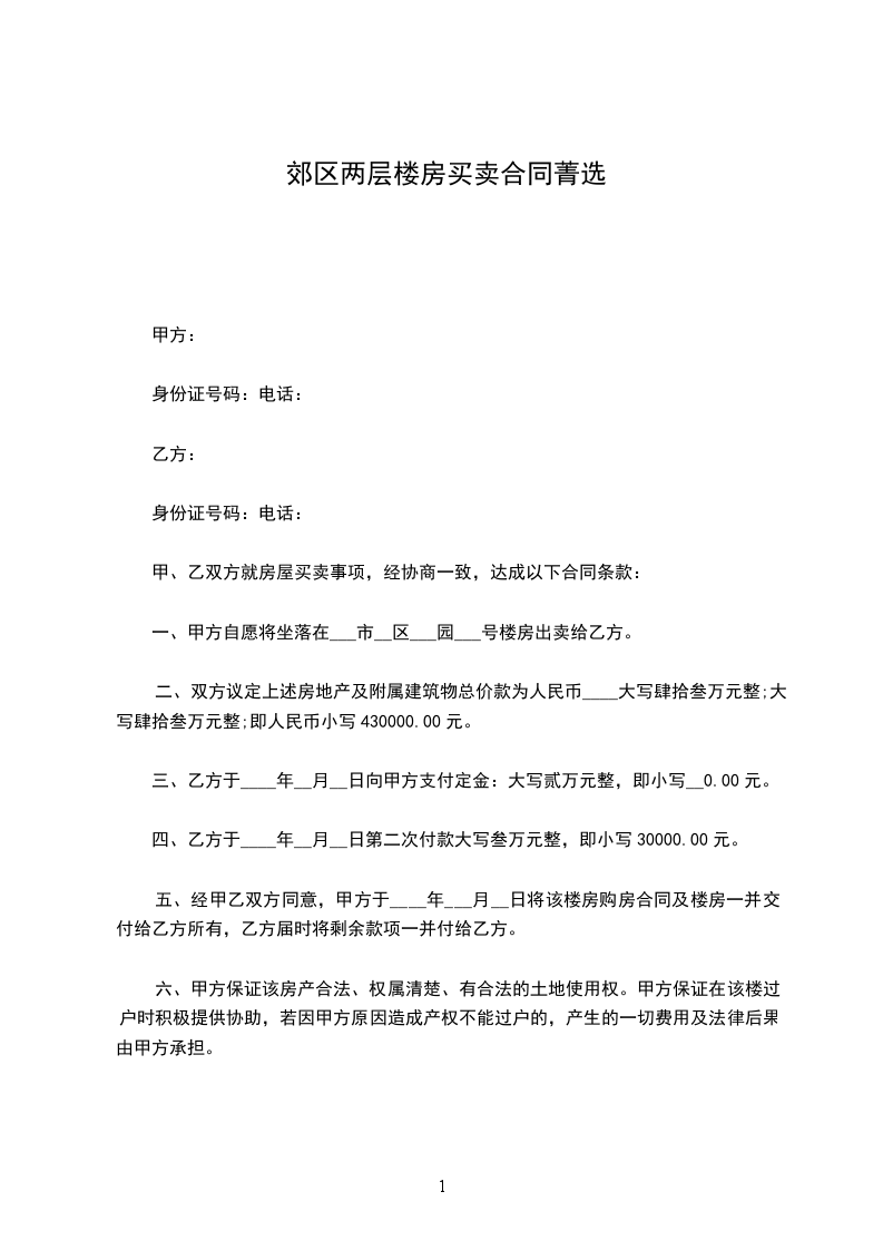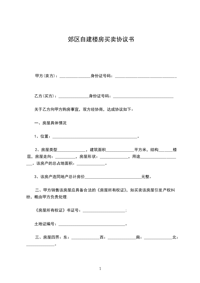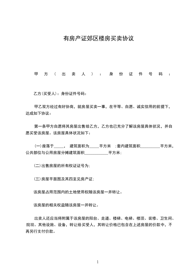 甲方(出卖人):身份证件号码: