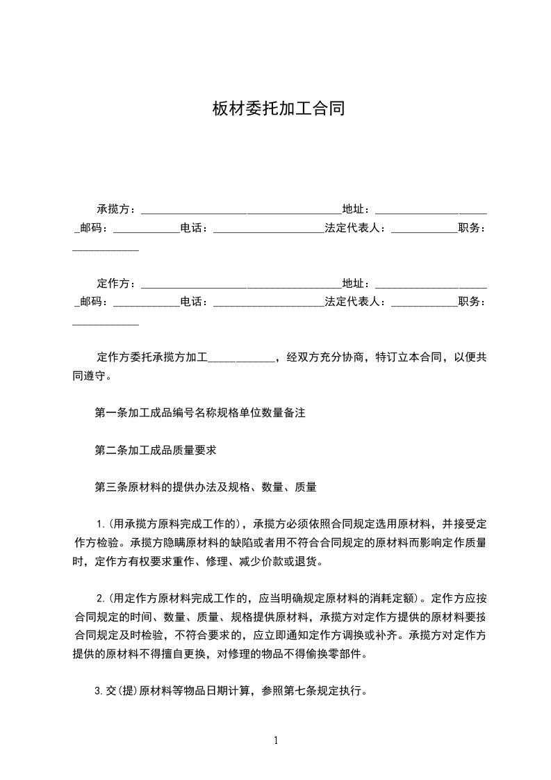 定作方委托承揽方加工____________,经双方充分协商,特订立本合同,以便共同遵守。