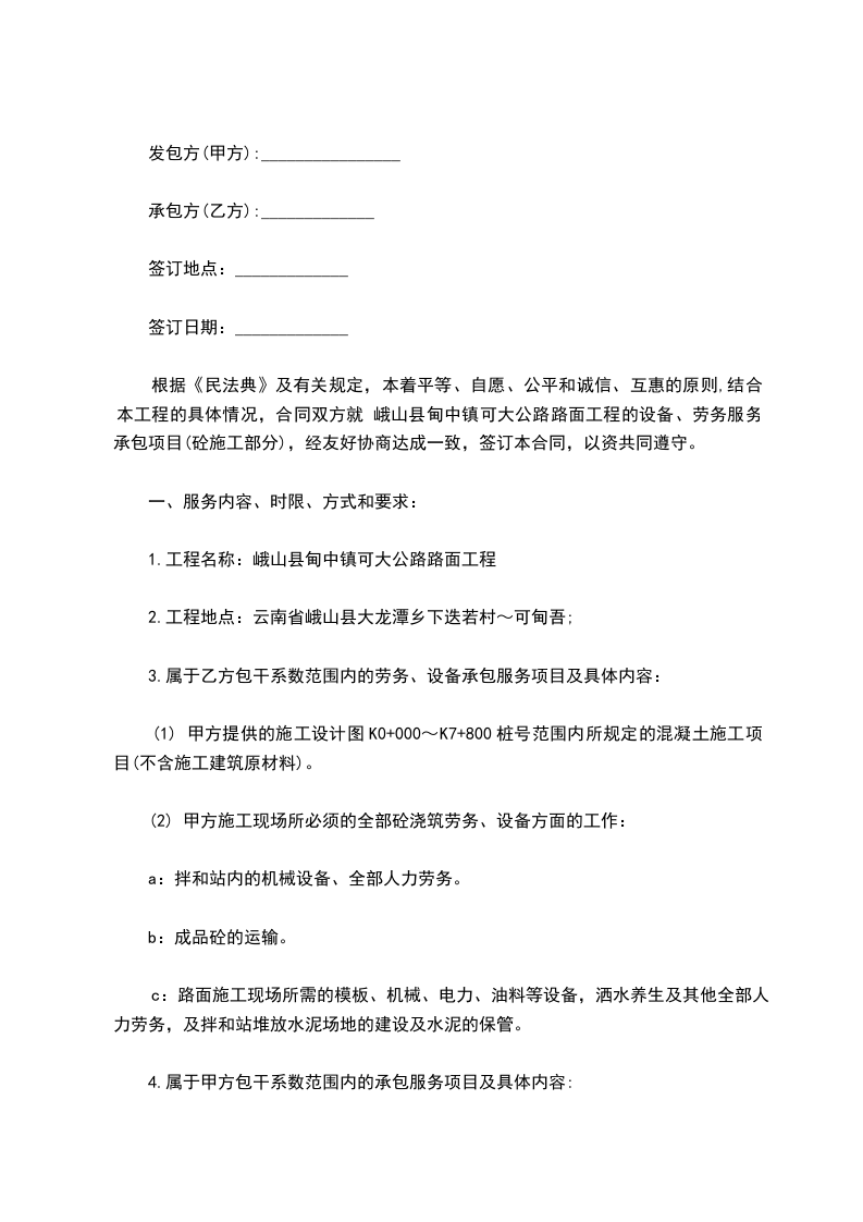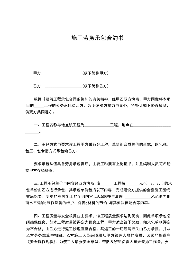 劳务承包内容:______________
