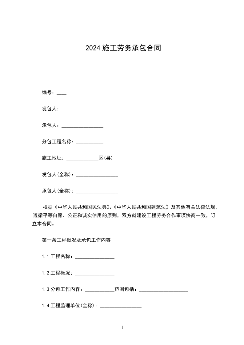 依照《中华人民共和国民法典》及其它有关法律、行政法规,遵循平等、自愿、公平和诚实信用的原则,甲乙双方就施工劳务承包事项协商达成一致,订立本合同。