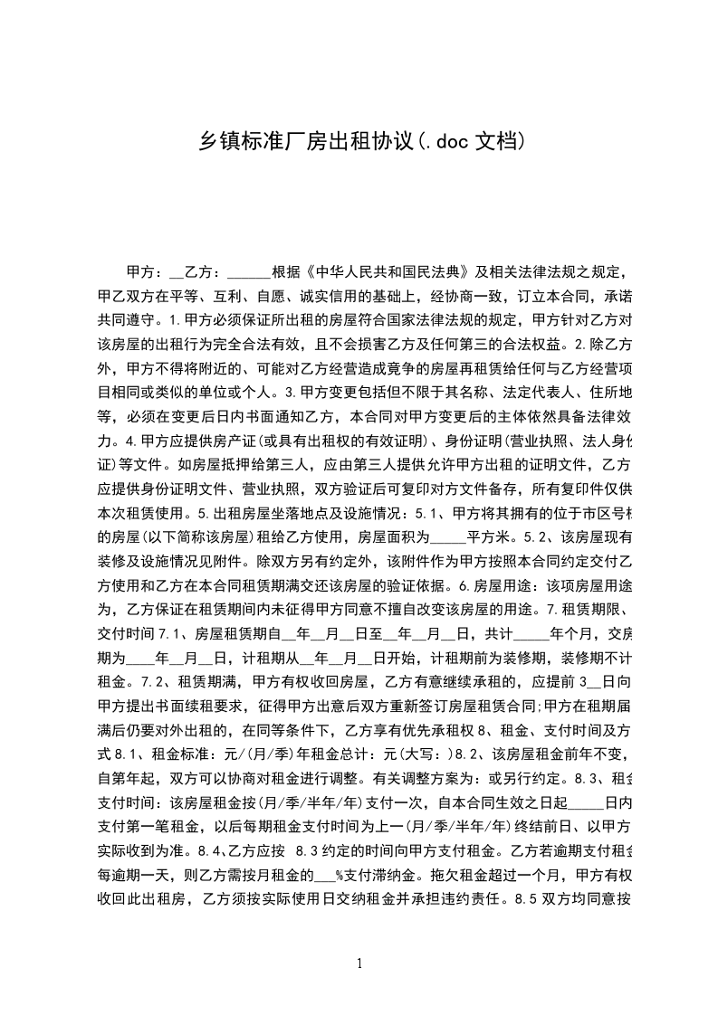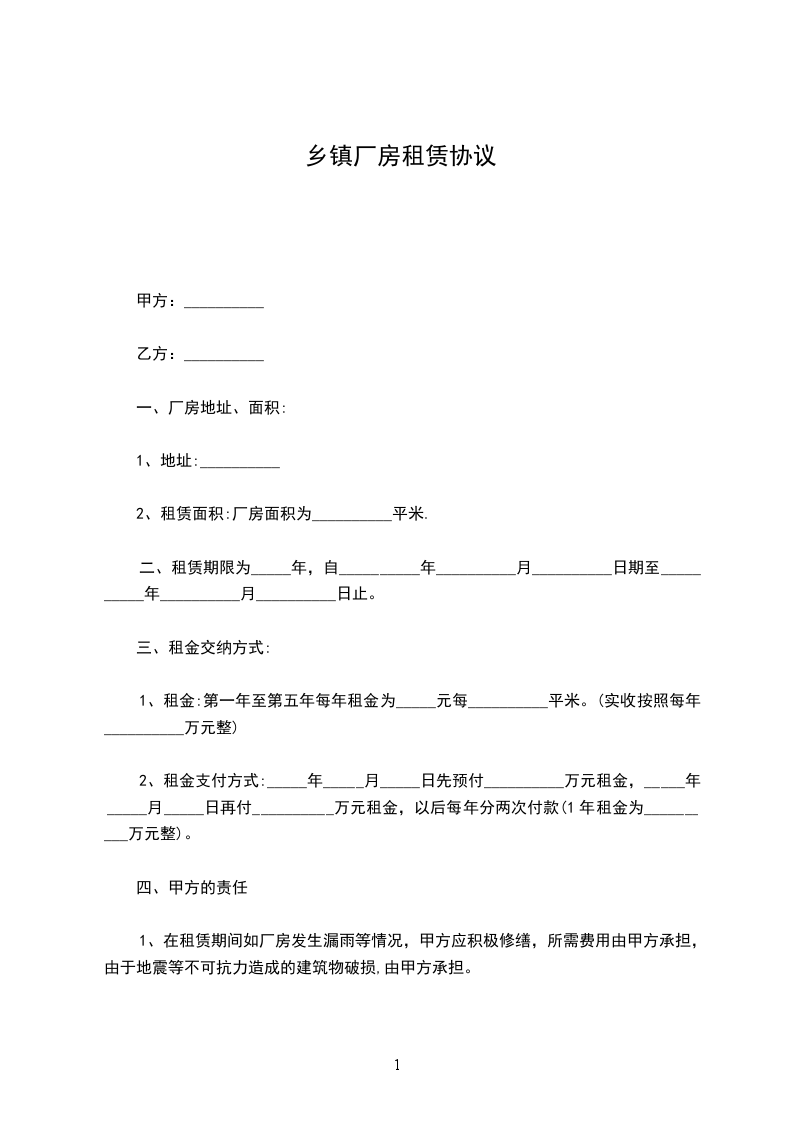 1、甲、乙双方约定,该厂房租赁租金为每年人民币______元。