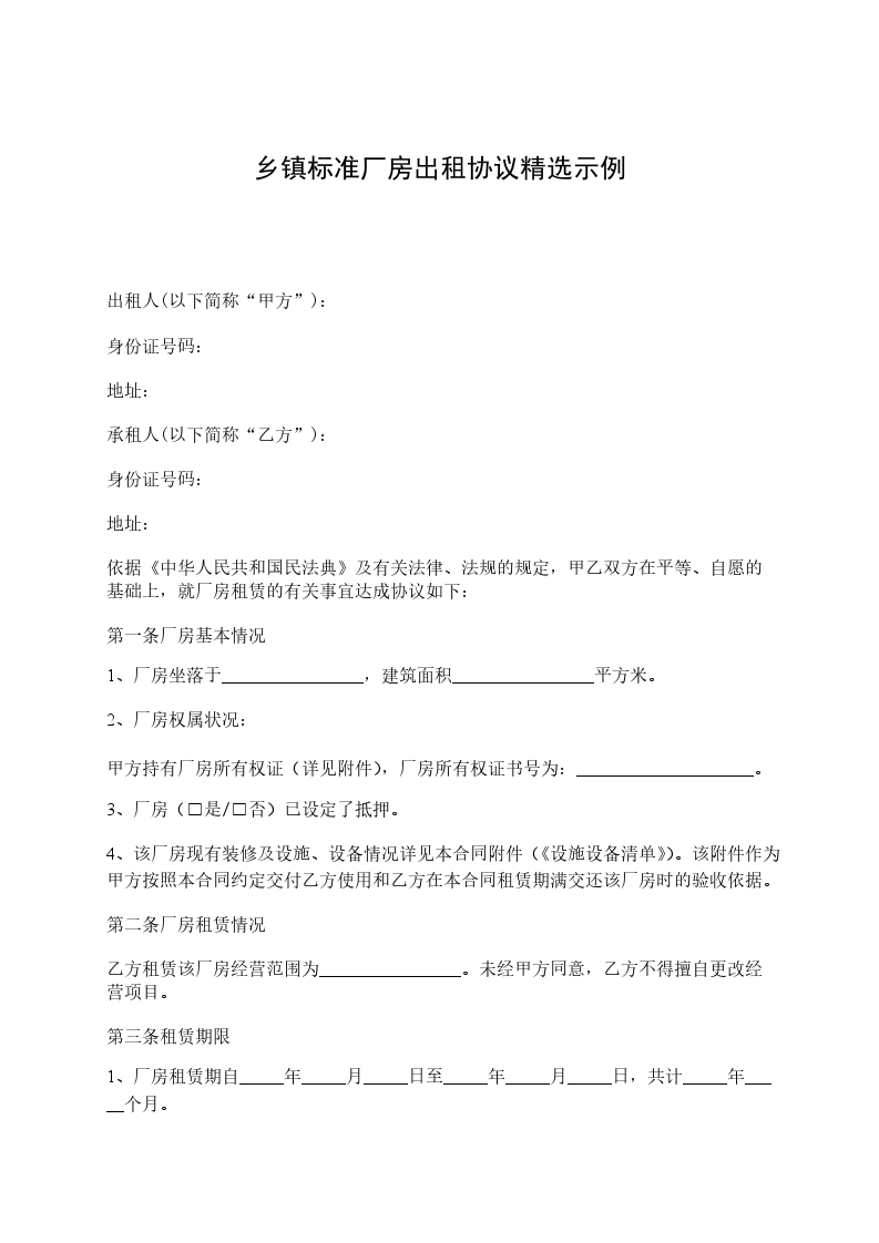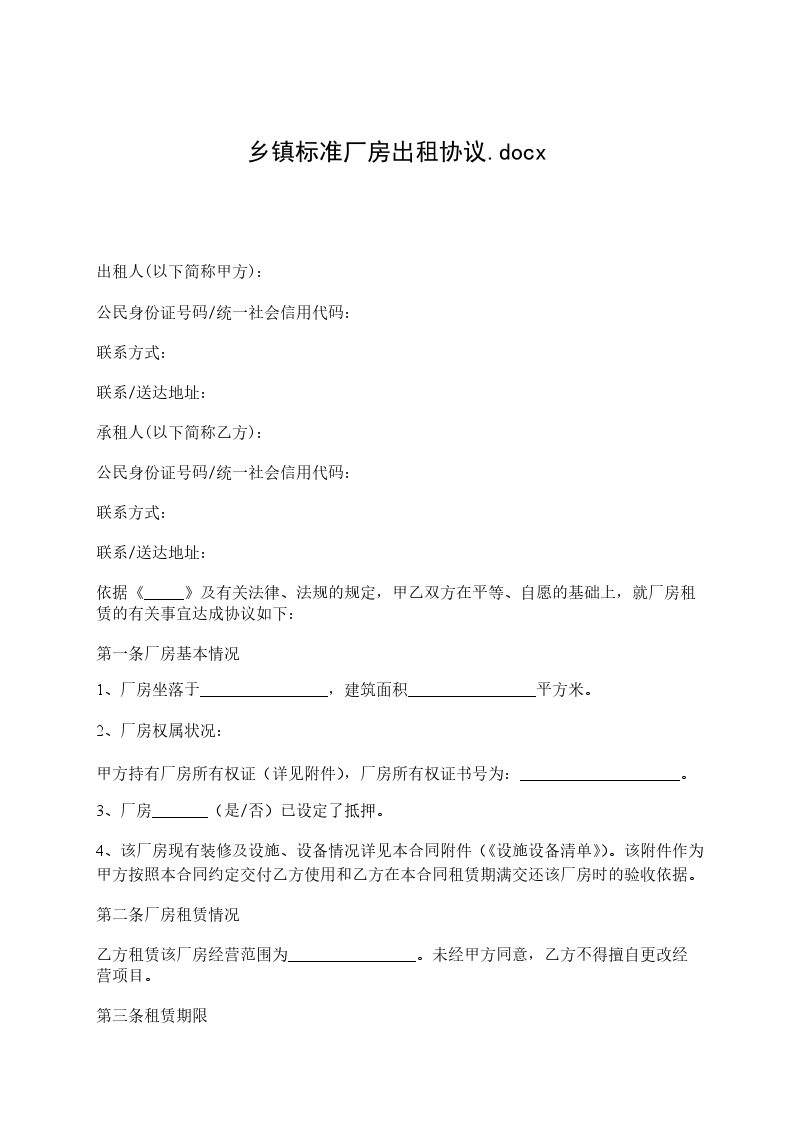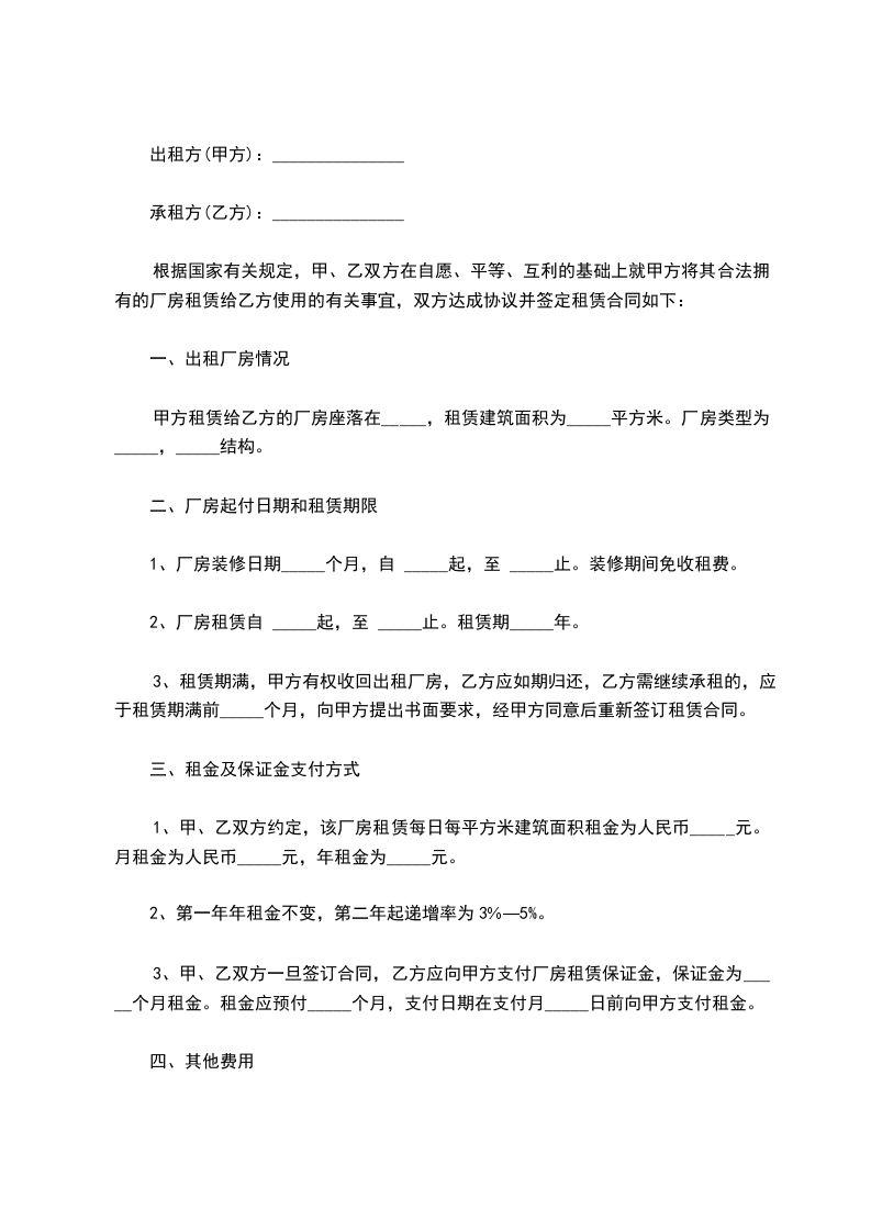 1、厂房租赁自______年____月____日起,至______年____月____日止。租赁期___年。