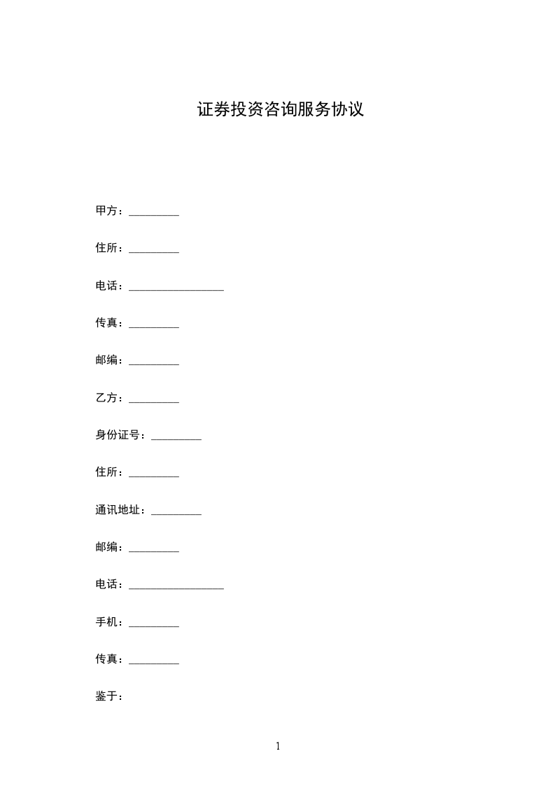 甲、乙双方本着诚实信用的原则,经友好协商就甲方有偿向乙方提供证券投资咨询服务达成如下协议: