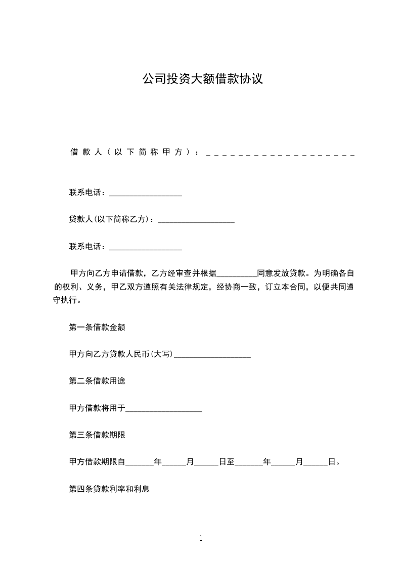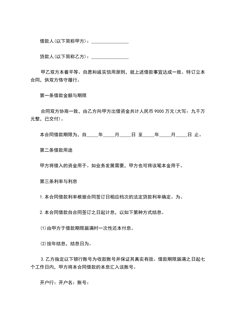 甲方向乙方贷款人民币(大写)___________________