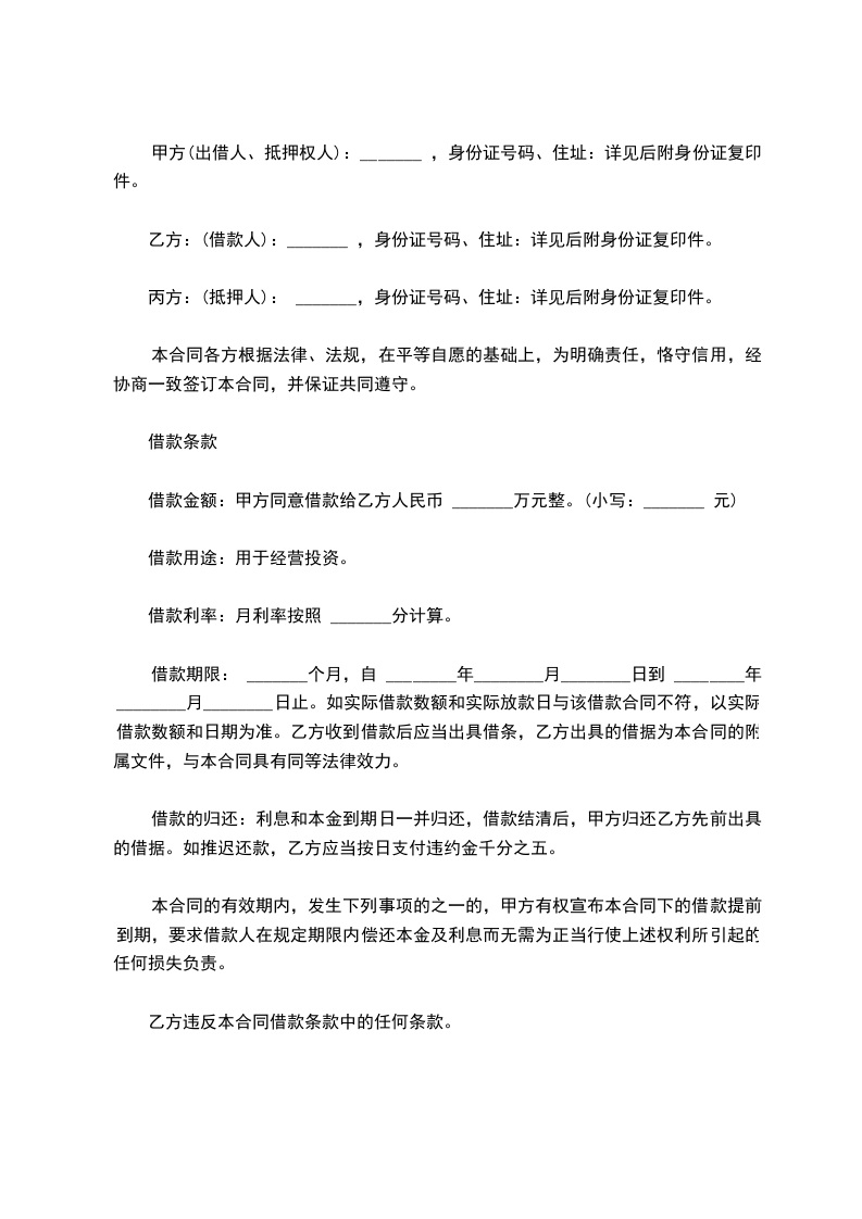 借款人(以下简称甲方):___________________