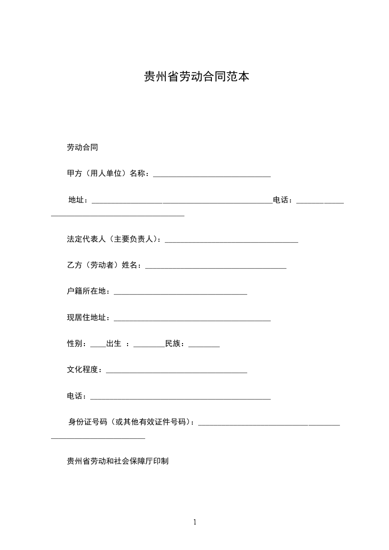 贵州省劳动和社会保障厅印制