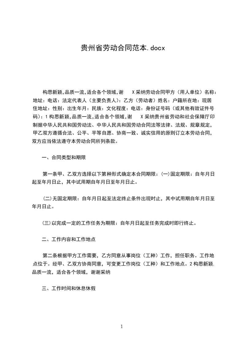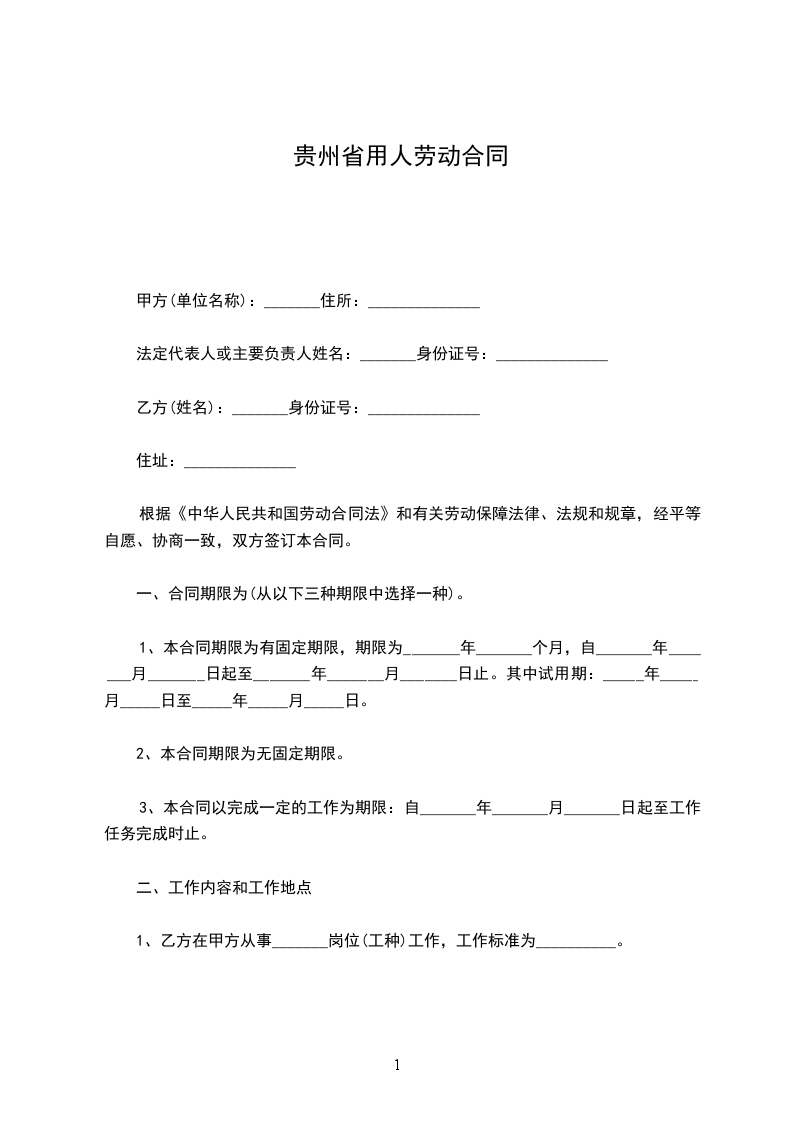 一、合同类型和期限
