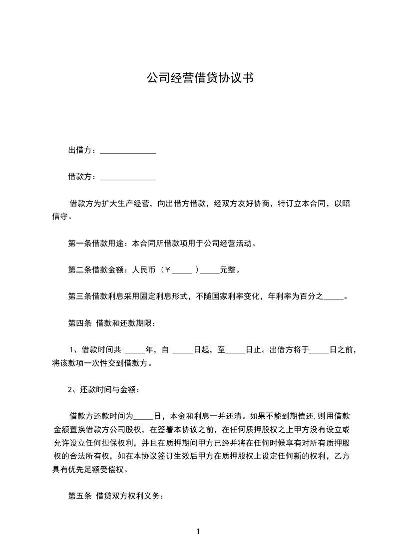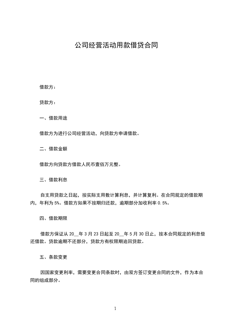 第一条借款用途:本合同所借款项用于公司经营活动。