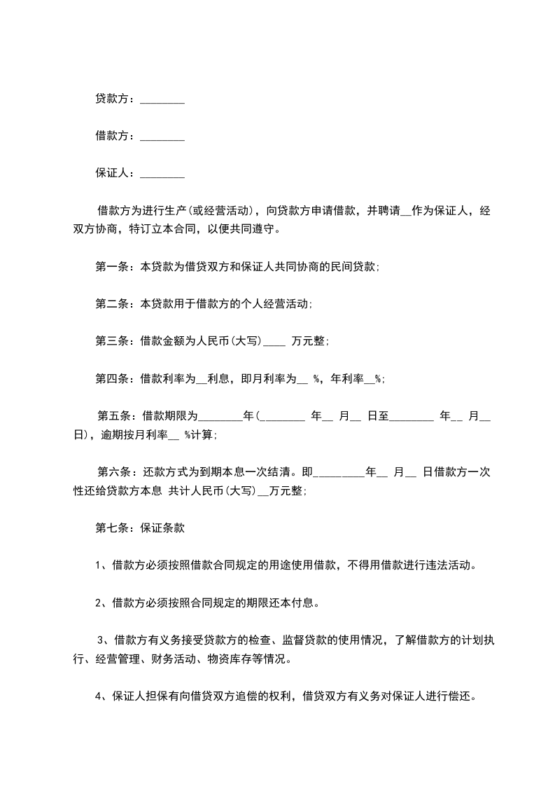 借款方还款时间为_____年_____月_____日,本金和利息一并还清。