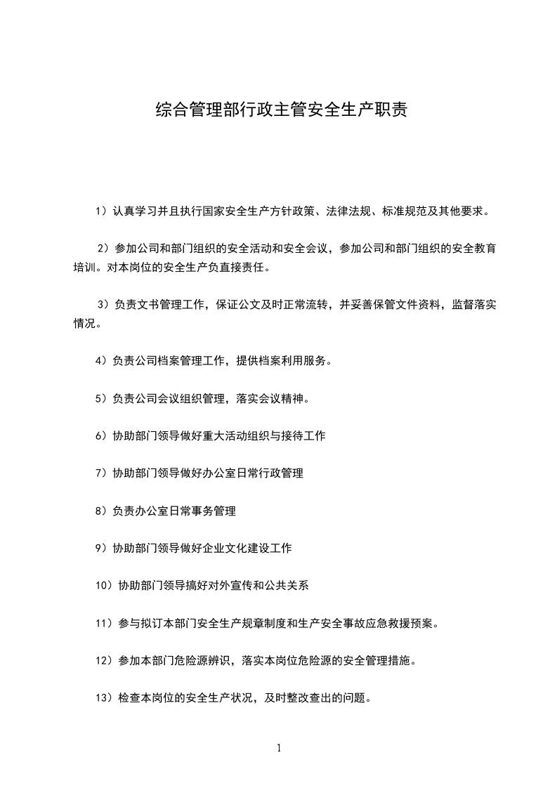 12、负责公司本部环境卫生、防火、防盗及交通等安全管理工作;