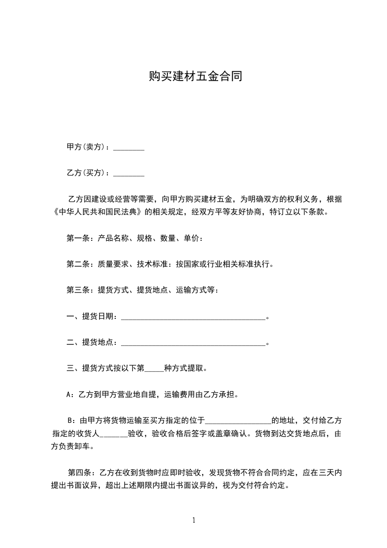 甲方(采购方): 乙方(供货方):