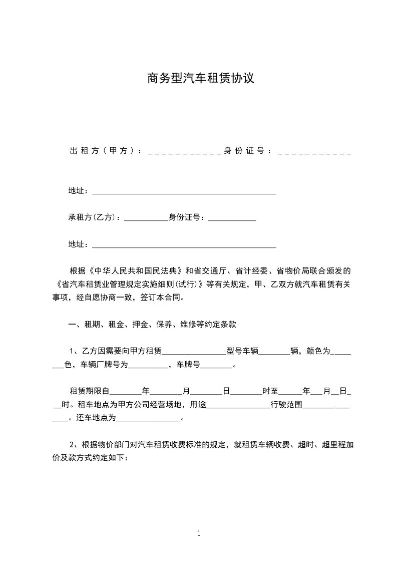 根据《中华人民共和国民法典》和省交通厅、省计经委、省物价局联合颁发的《省汽车租赁业管理规定实施细则(试行)》等有关规定,甲、乙双方就汽车租赁有关事项,经自愿协商一致,签订本合同。