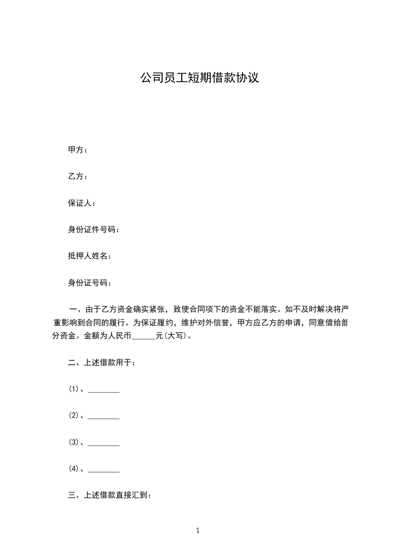 一、由于乙方资金确实紧张,致使合同项下的资金不能落实。如不及时解决将严重影响到合同的履行。为保证履约,维护对外信誉,甲方应乙方的申请,同意借给部分资金。金额为人民币______元(大写)。