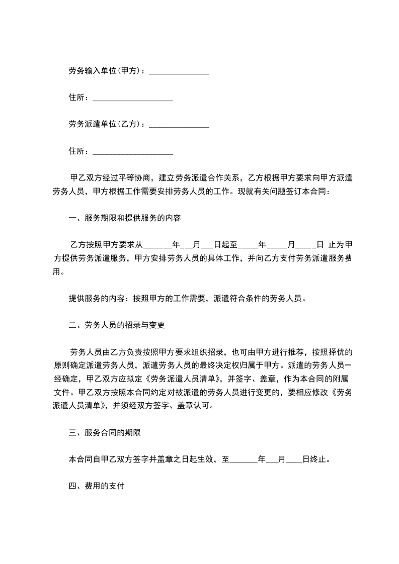 乙方的劳务报酬由所派往的单位根据乙方工作岗位确定具体标准,该标准不低于北京市最低工资,由所派往单位直接支付乙方,或先支付甲方,再由甲方每月6日支付乙方。
