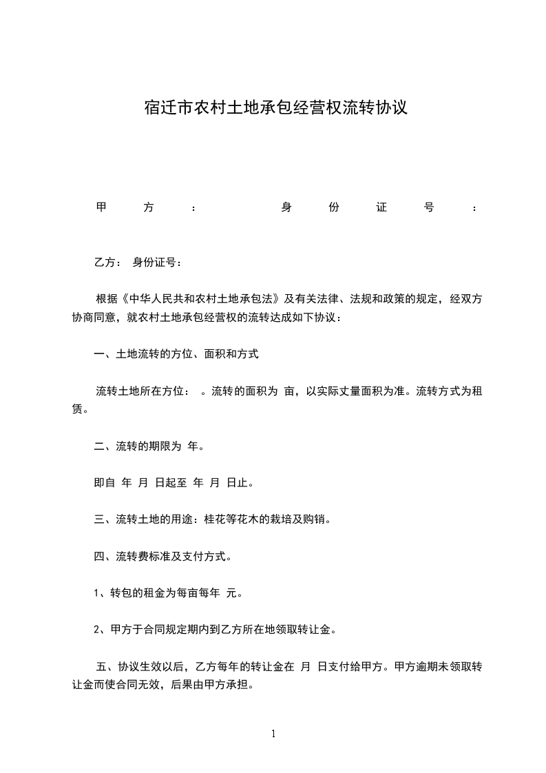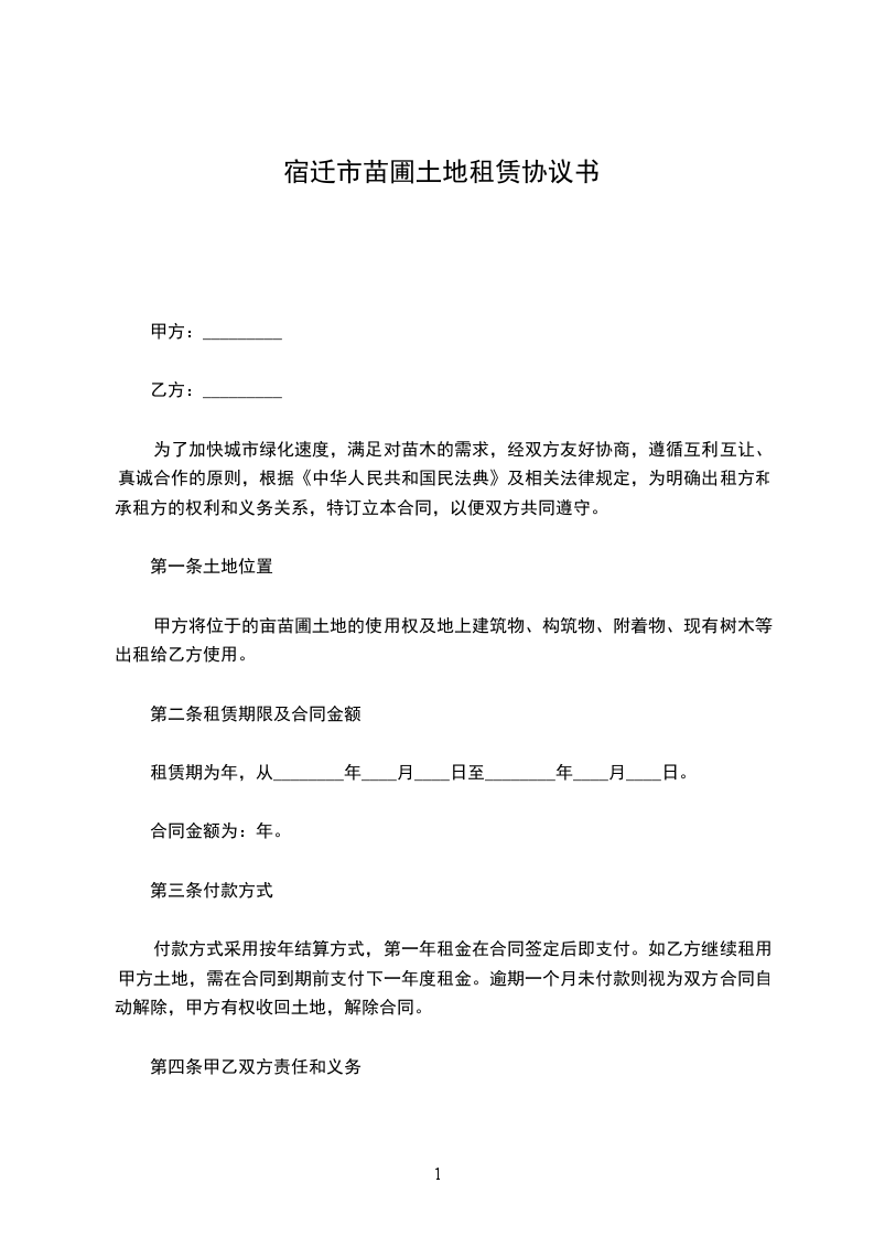 乙方按每亩____元支付租赁费用,一次性付清,按期限的租金共计______元,大写____________。