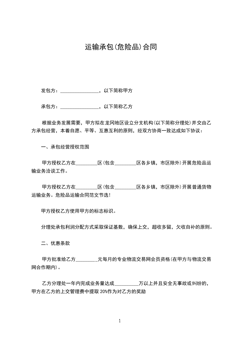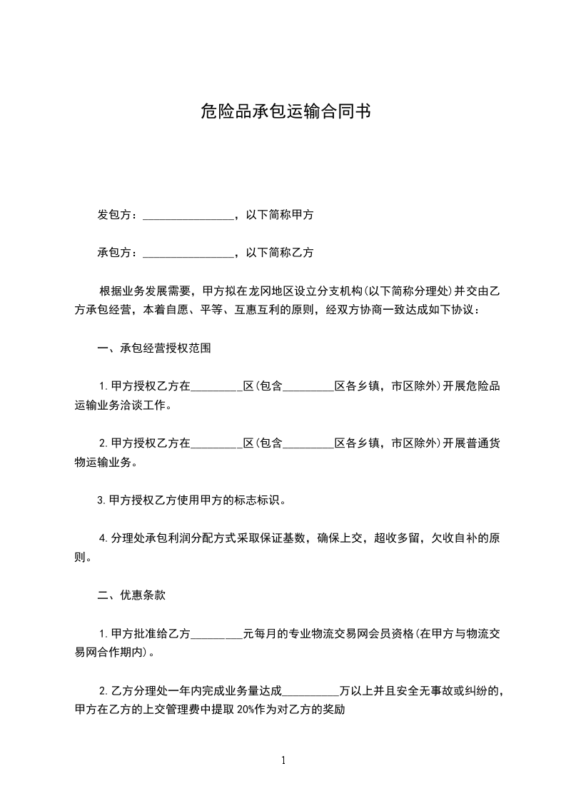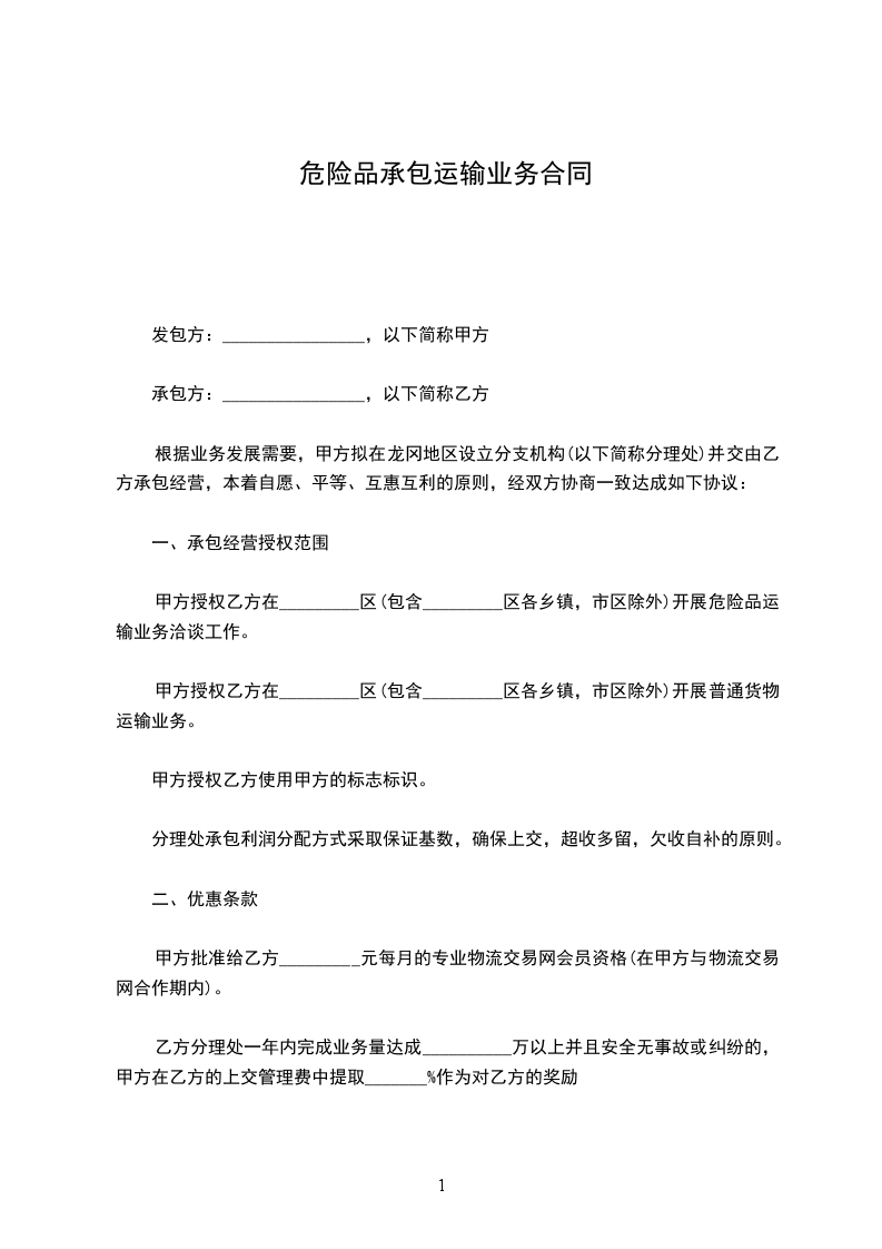 甲方授权乙方在_________区(包含_________区各乡镇,市区除外)开展危险品运输业务洽谈工作。