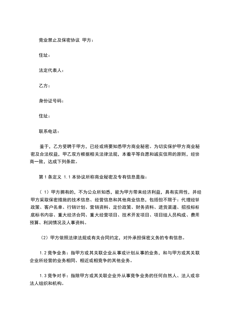 1.2竞争业务:指甲方或其关联企业从事或计划从事的业务,和与甲方或其关联企业所经营的业务相同、相近或相竞争的其他业务。