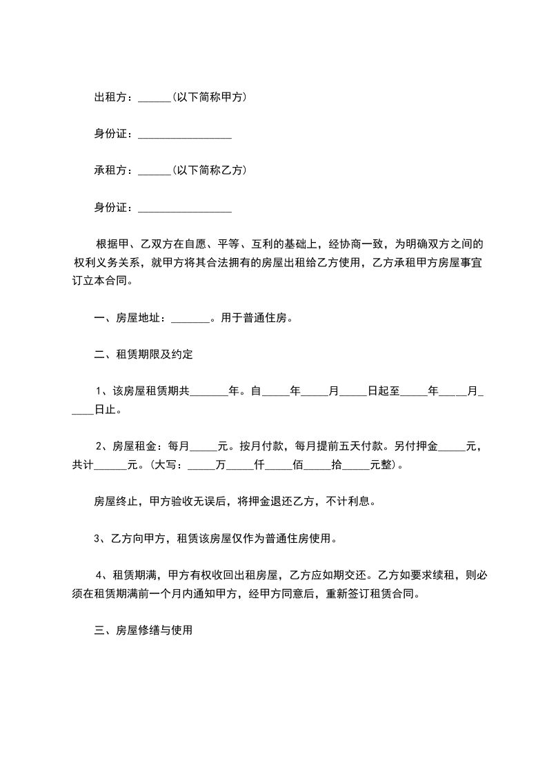 3、乙方向甲方,租赁该房屋仅作为普通住房使用。