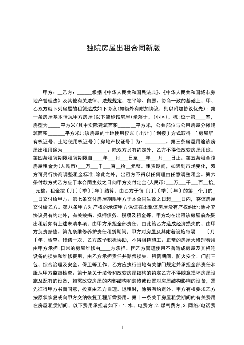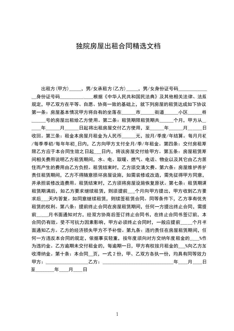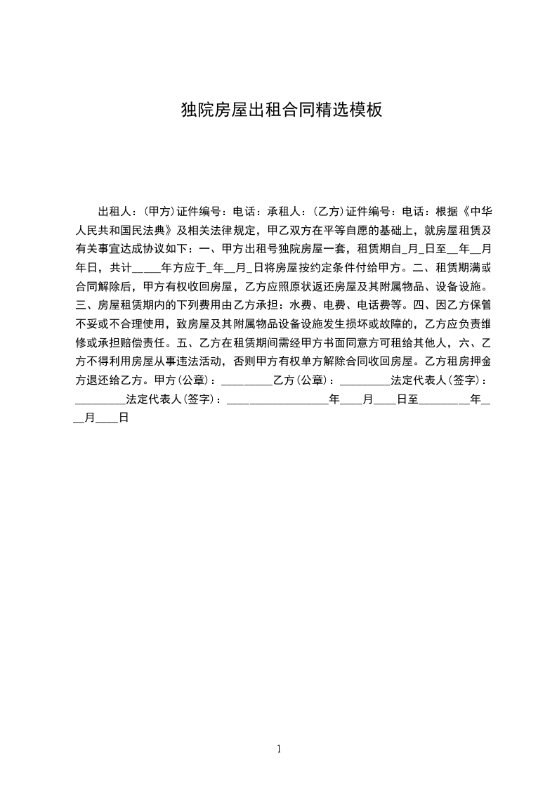 出租方:______(以下简称甲方)