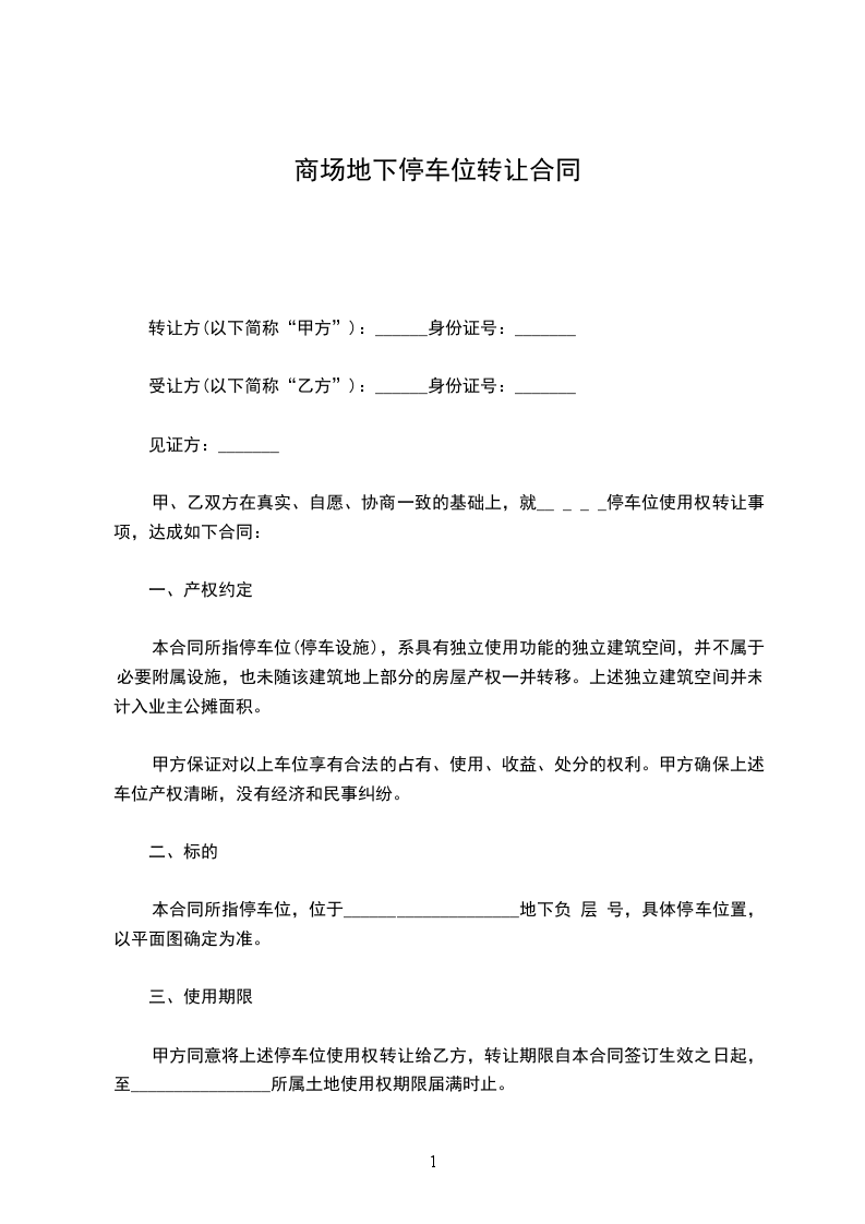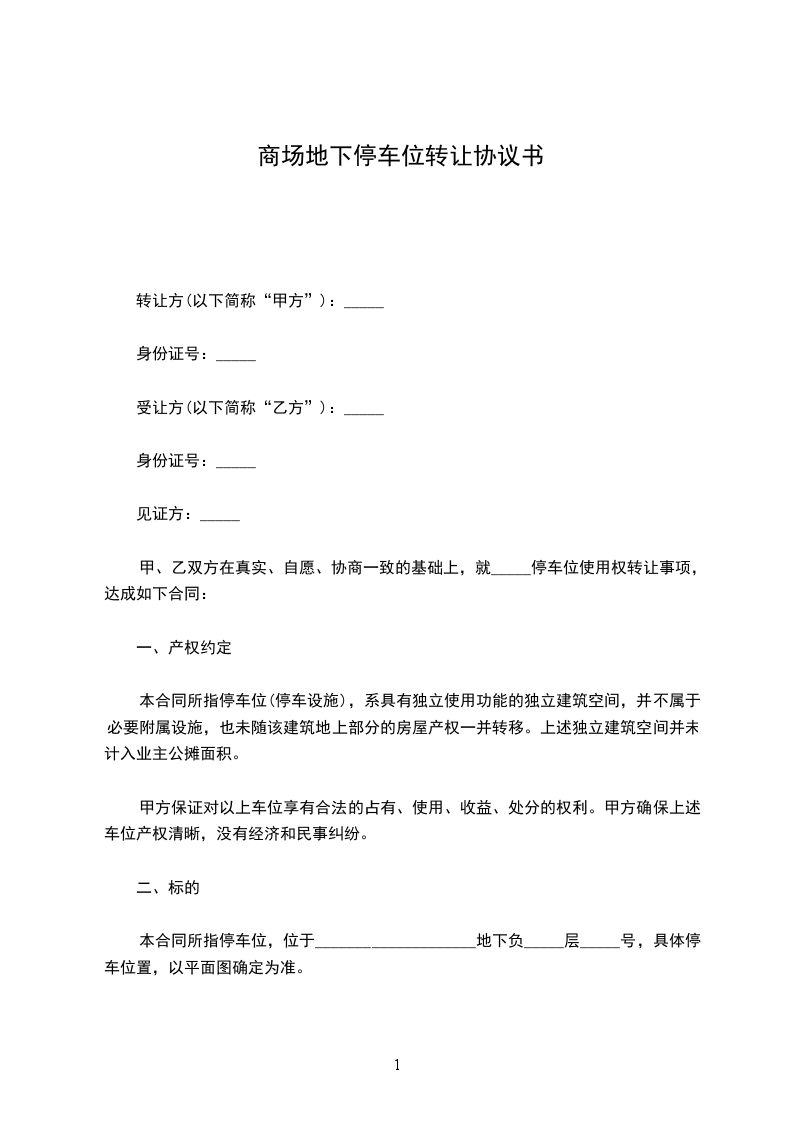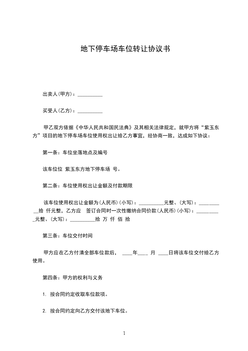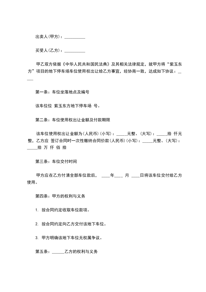 甲、乙双方在真实、自愿、协商一致的基础上,就____项目停车位使用权转让事项,签订协议如下: