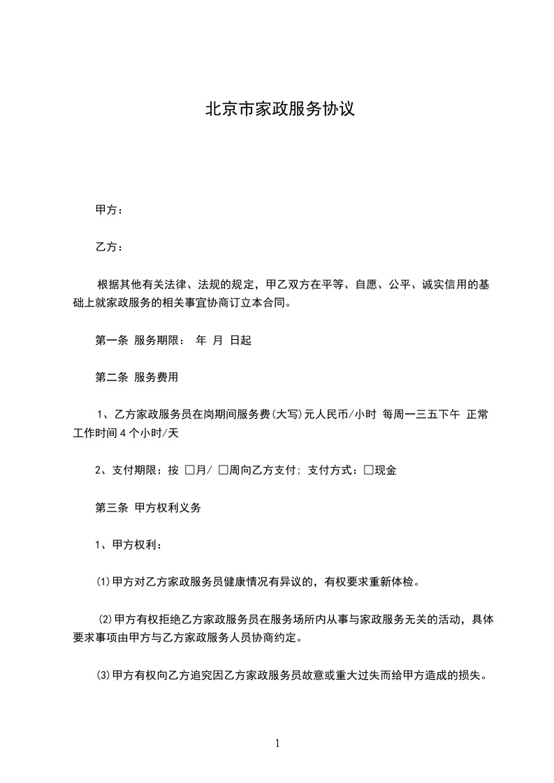 6、不得参与甲方家庭及邻纠纷,尊重甲方家的生活习惯,不得虐待所服务对象。