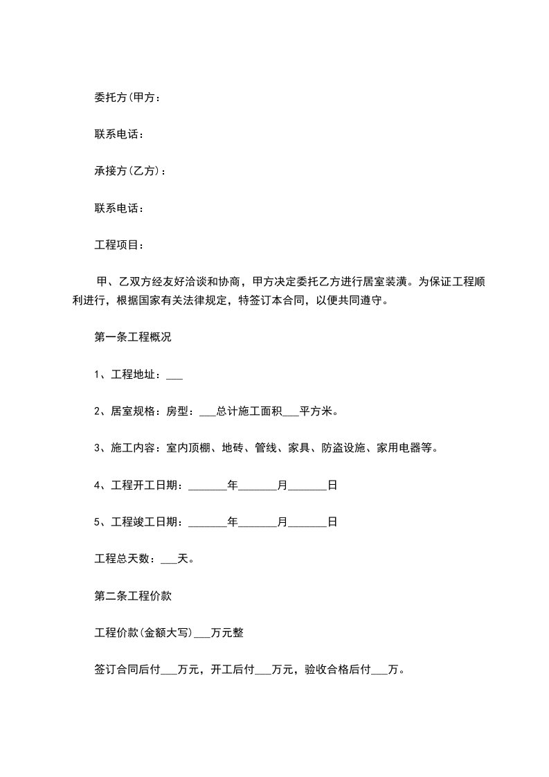 甲、乙双方经友好洽谈和协商,甲方决定委托乙方进行居室装潢。为保证工程顺利进行,根据国家有关法律规定,特签订本合同,以便共同遵守。