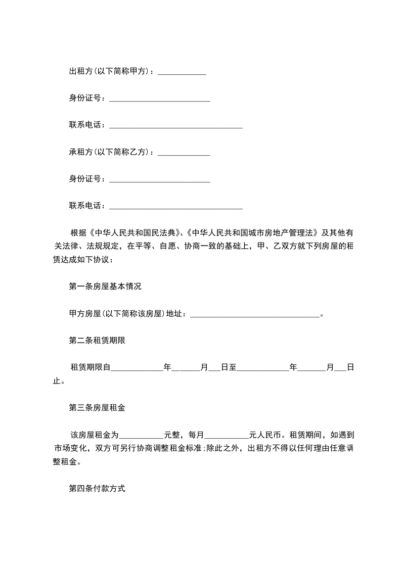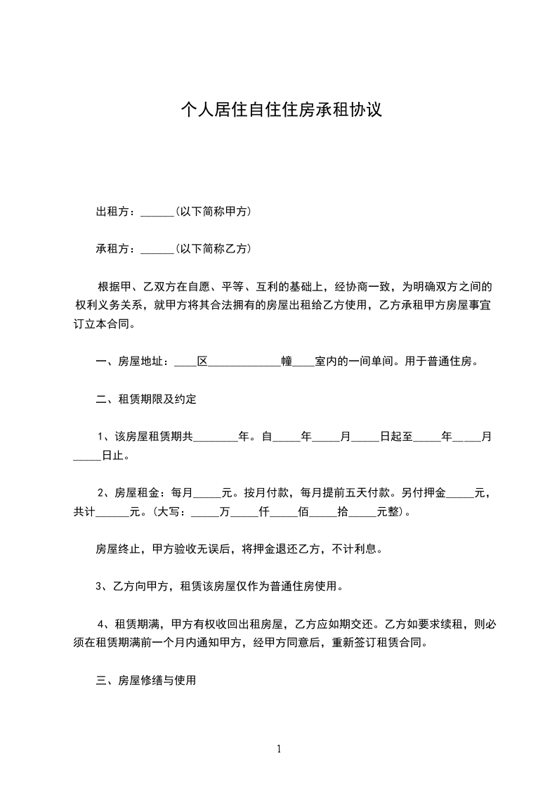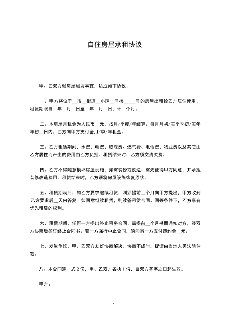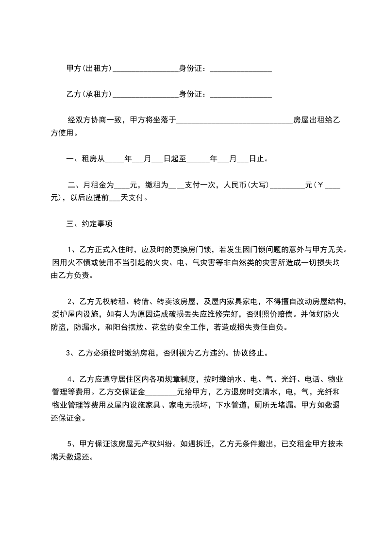 租赁期间双方必须信守合同,任何一方违反本合同的规定,按年度须向对方交纳____个月租金作为违约金。