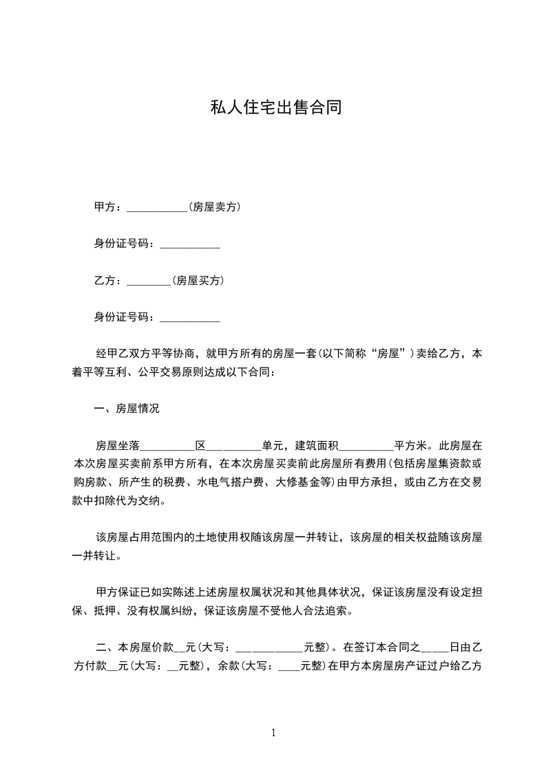 1、甲、乙双方协商一致,甲方所售房屋总金额为___拾___万___仟___佰元整;