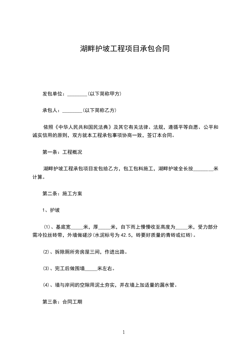 湖畔护坡工程承包项目发包给乙方,包工包料施工,湖畔护坡全长按________米计算。