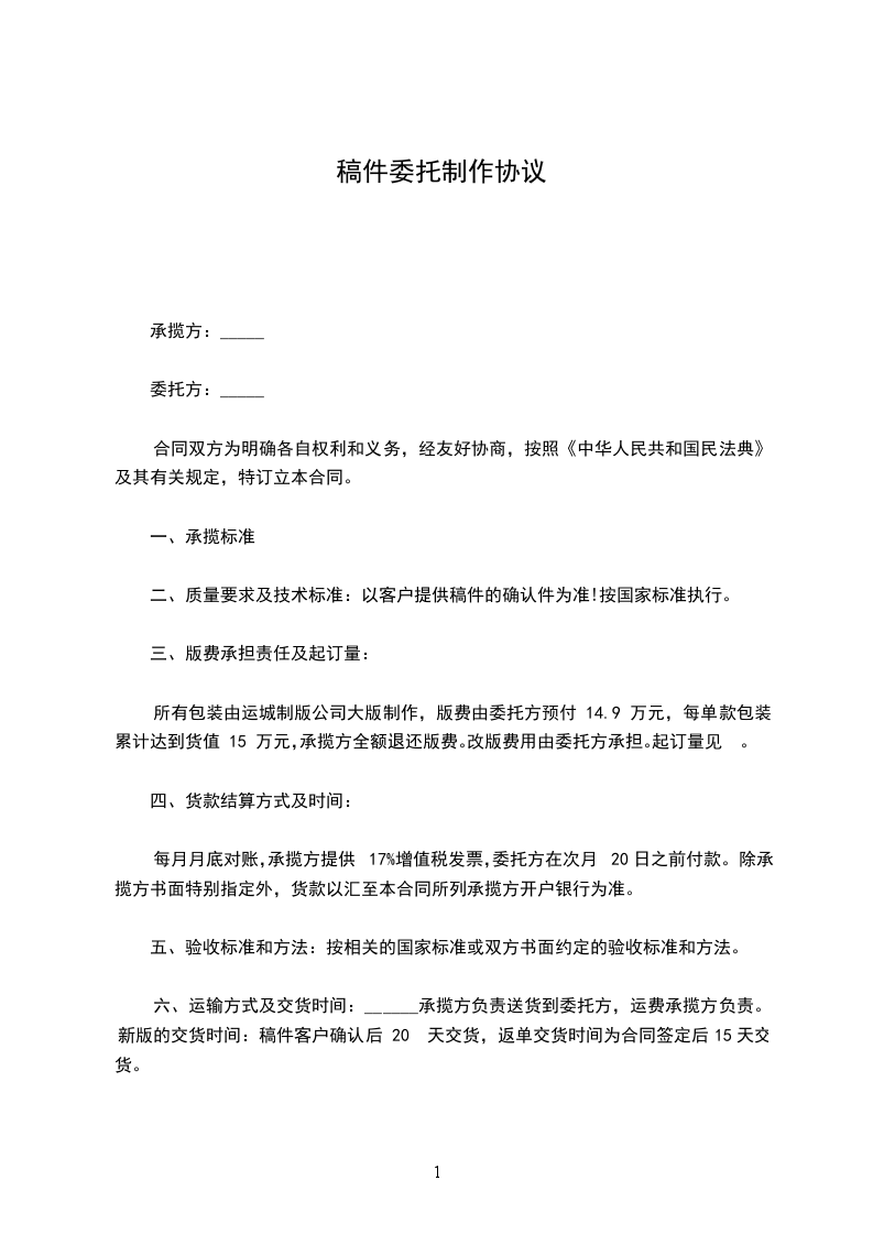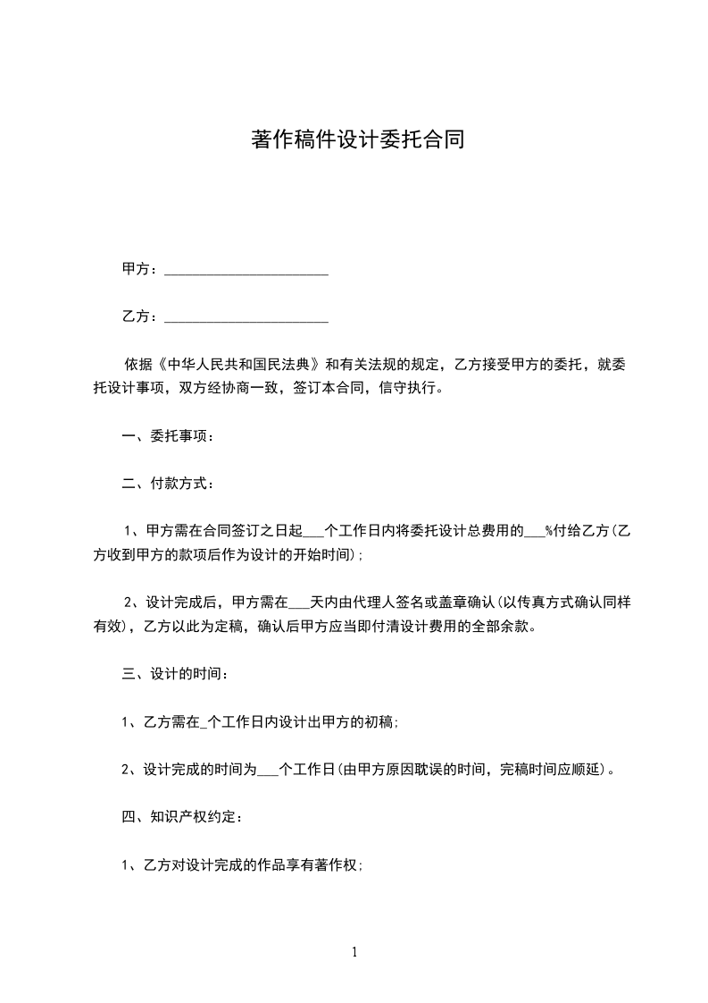 1、乙方需在_个工作日内设计出甲方的初稿;