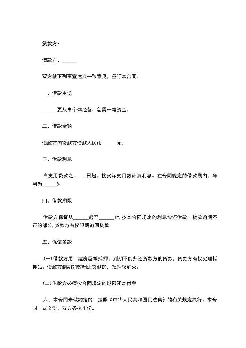 现有甲方向乙方借款人民币(大写)______元,用于购买、建造自用住房,售房单位为(售房单位全称),______为维护甲乙双方利益,根据《民法典》规定立此合同,并共同遵守以下条款。