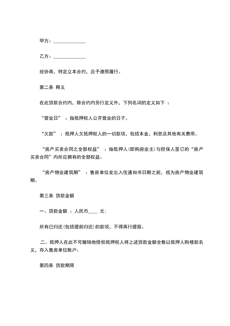 二、乙方向甲方提供的贷款,甲方只能用于购买、建造翻建自用住房,不得挪作他用。
