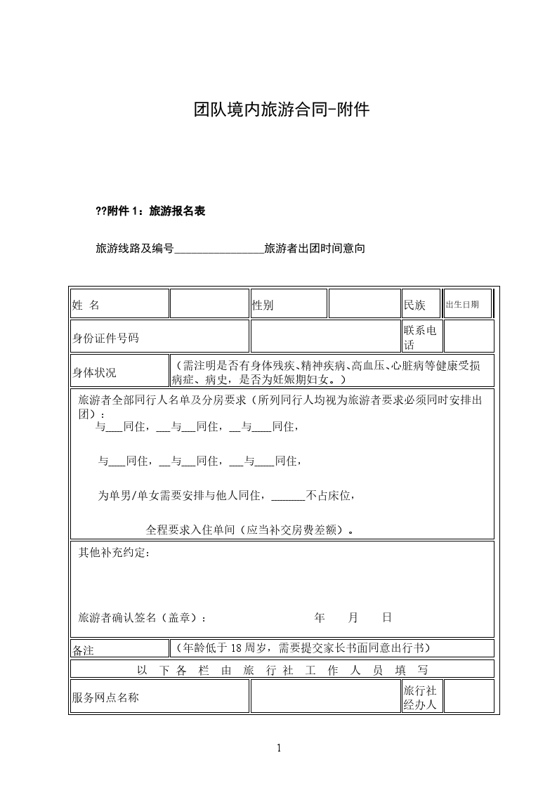 附件1:旅游报名表