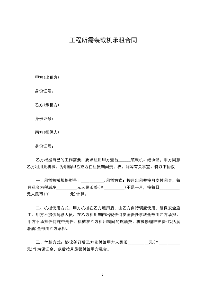 乙方根据自己的工作需要,要求租用甲方壹台______装载机。经协议,甲方同意乙方租用此机械。为明确甲乙双方在租赁期间责、权、利等有关事宜。特以下协议: