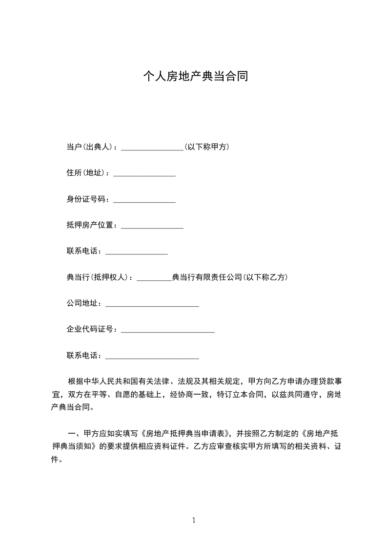 甲乙双方经充分协商,同意就下列房地产抵押典当事项,订立本合同,共同遵守。