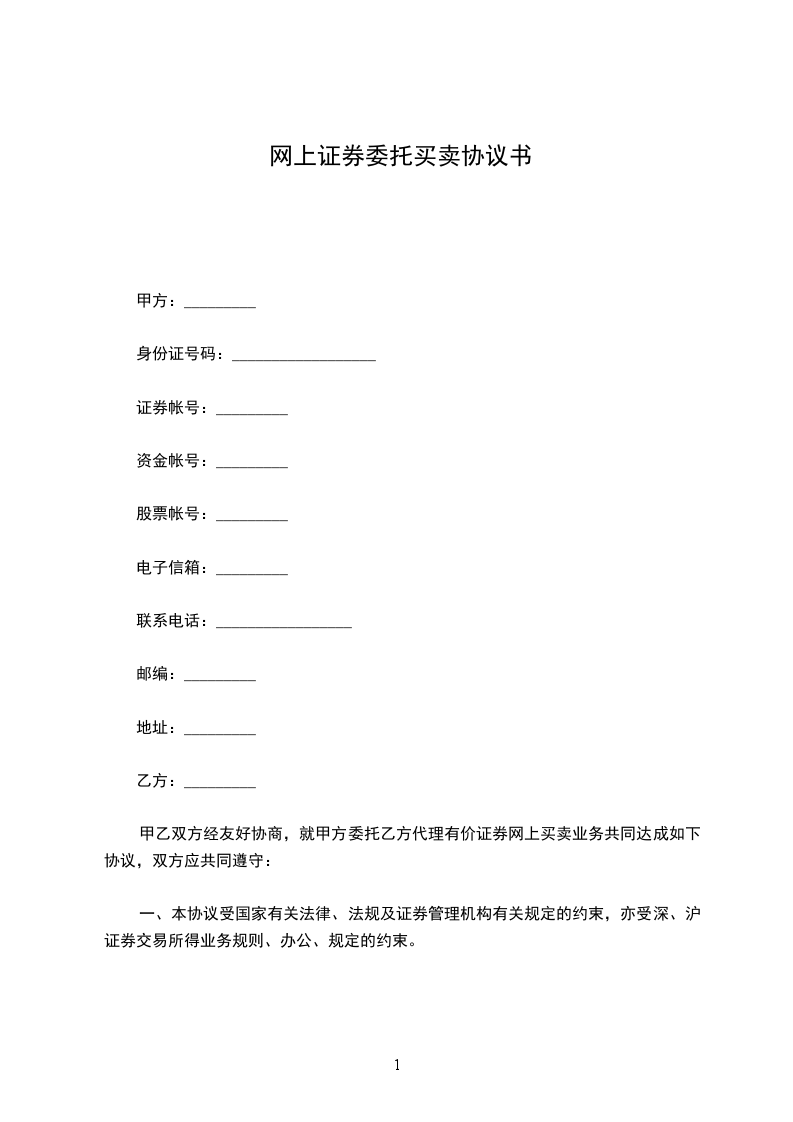 甲乙双方经友好协商,就甲方委托乙方代理有价证券网上买卖业务共同达成如下协议,双方应共同遵守: