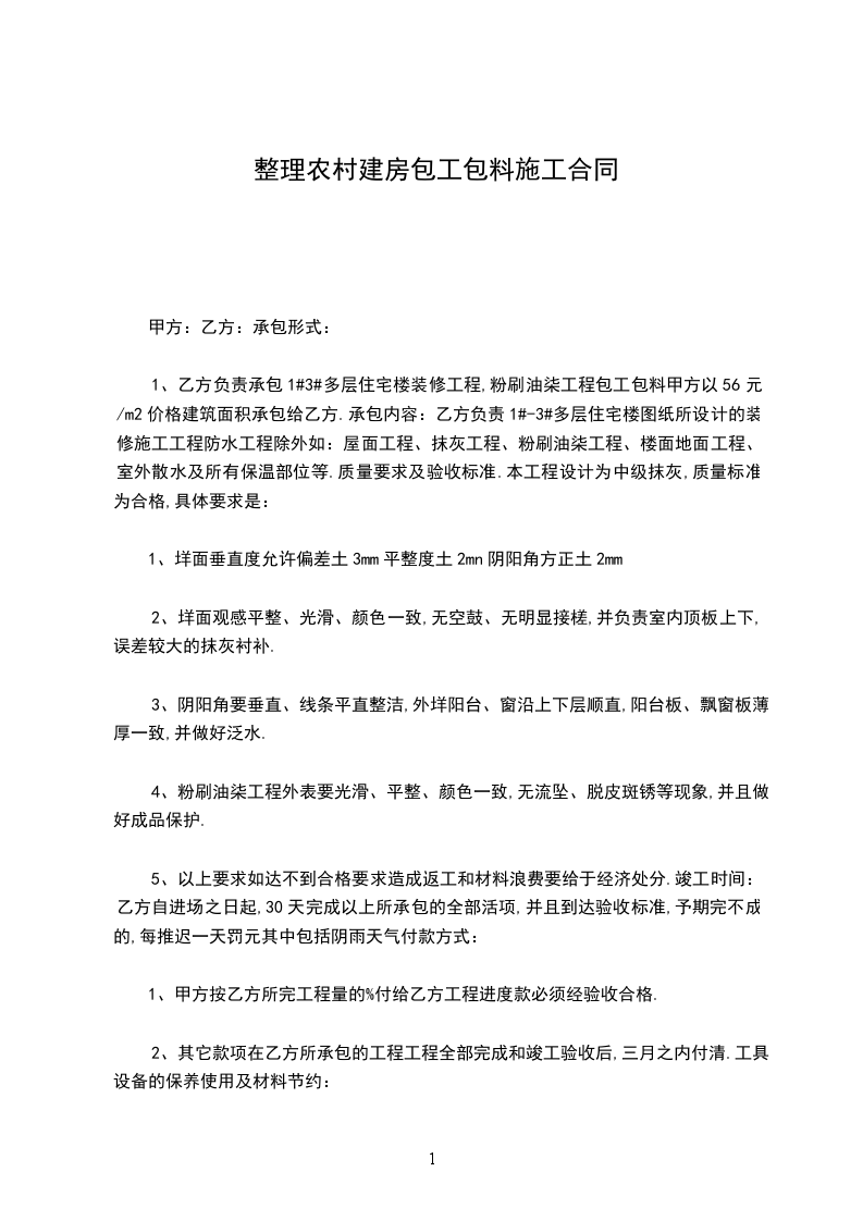 劳保措施,施工防护措施到位,安全施工。如果乙方施工人员因自身原因或乙方安全防护措施不到位出现工伤,或因施工造成他人损伤等事故,一切由乙方负责,甲方不负担任何责任和费用。文明施工,讲究职业道德,讲究清洁卫生。
