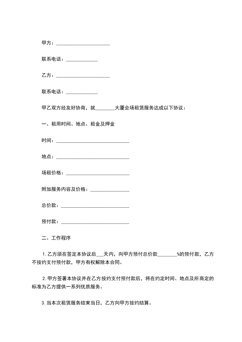 甲乙双方经友好协商,就________大厦会场租赁服务达成以下协议: