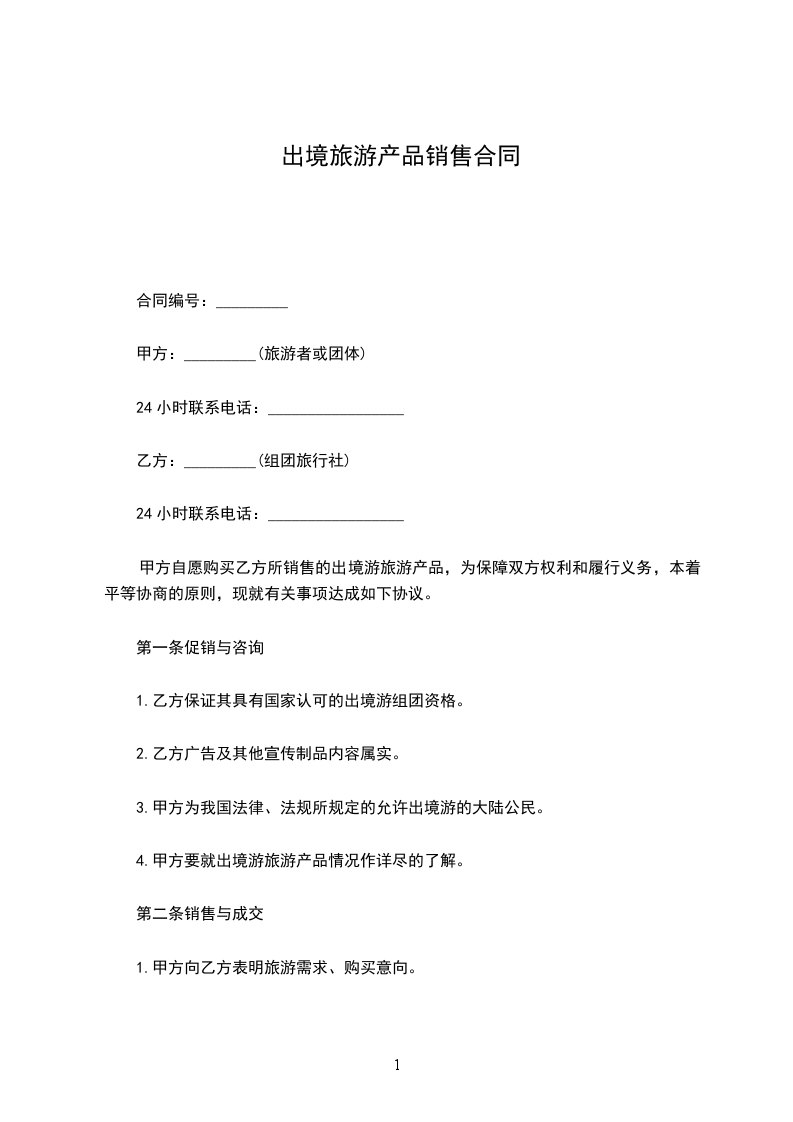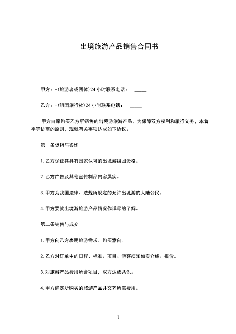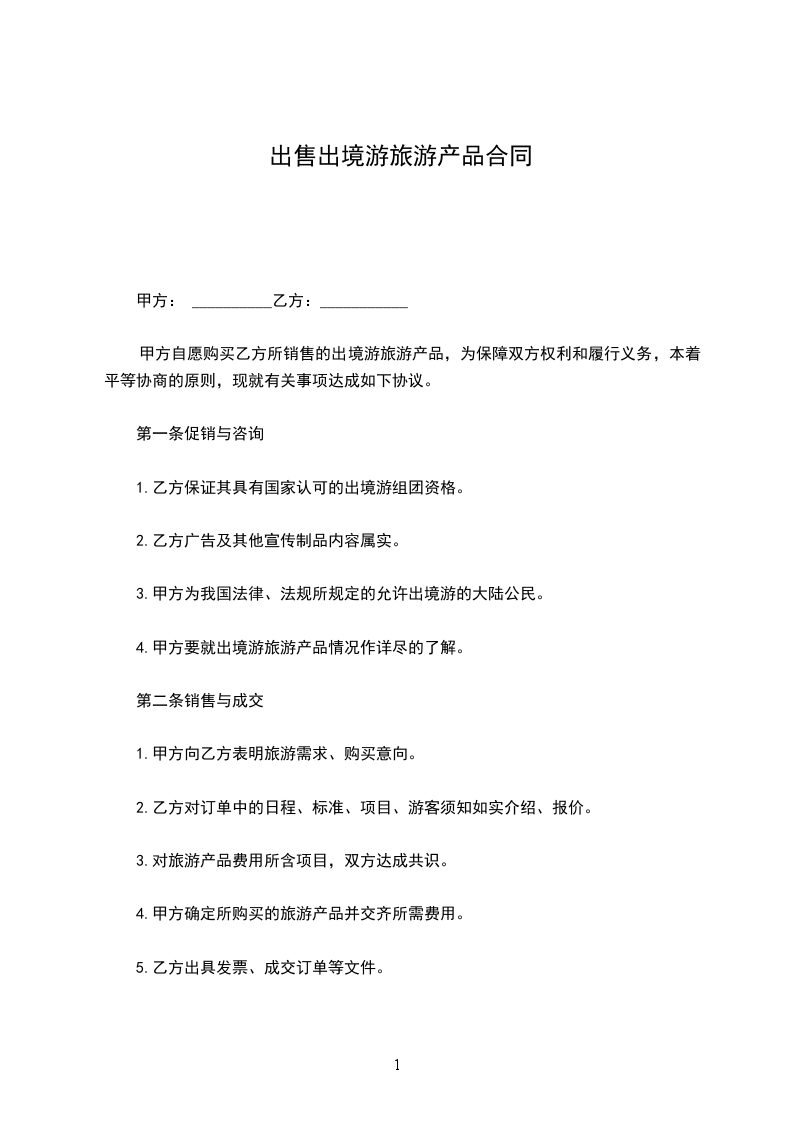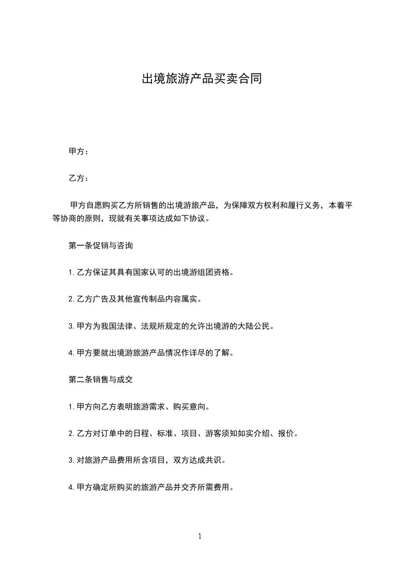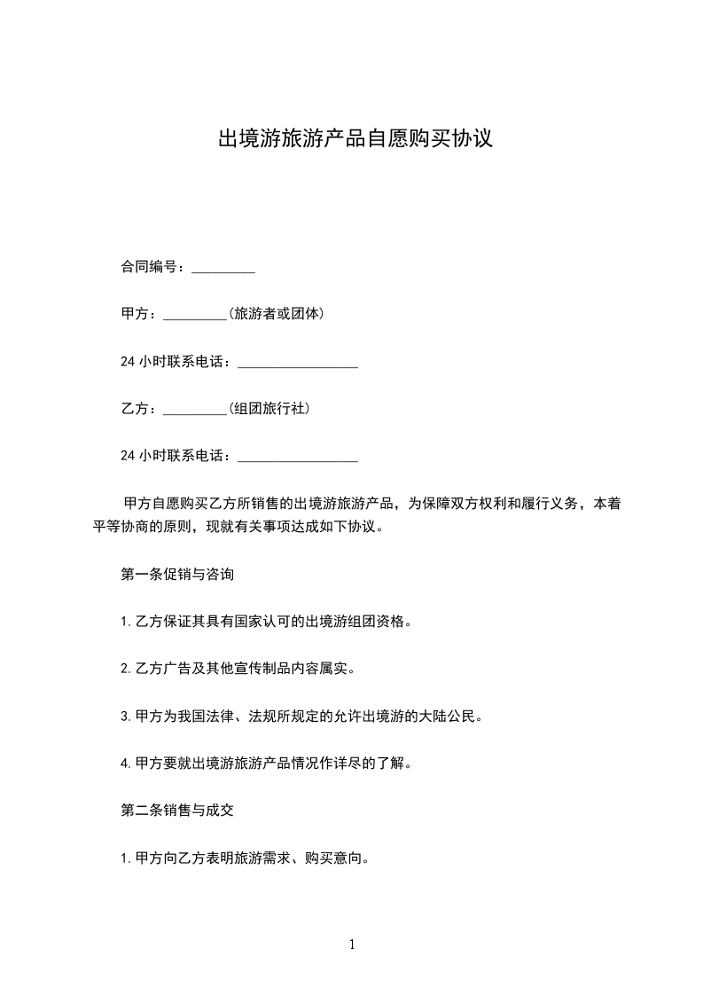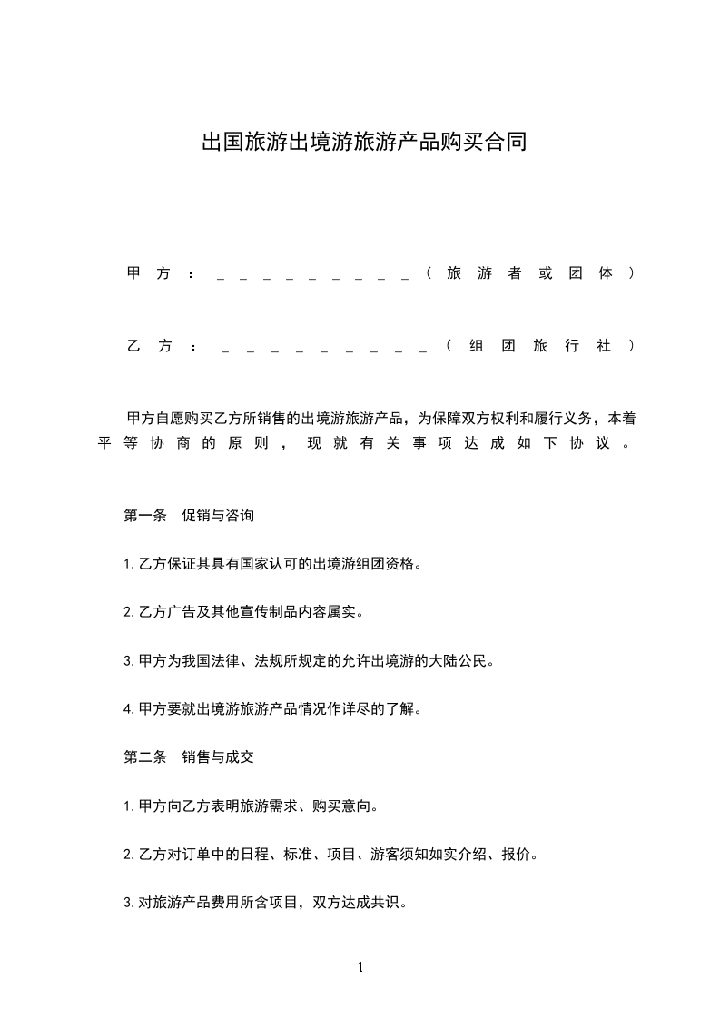 甲方自愿购买乙方所销售的出境游旅产品,为保障双方权利和履行义务,本着平等协商的原则,现就有关事项达成如下协议。