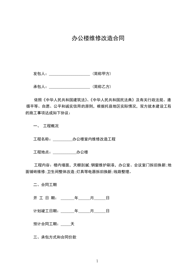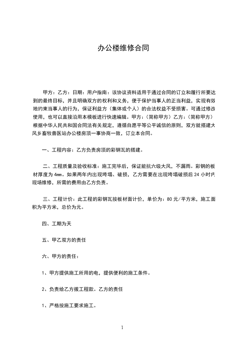 1.维修工程的内容及要求:办公楼所有水电维修/工程