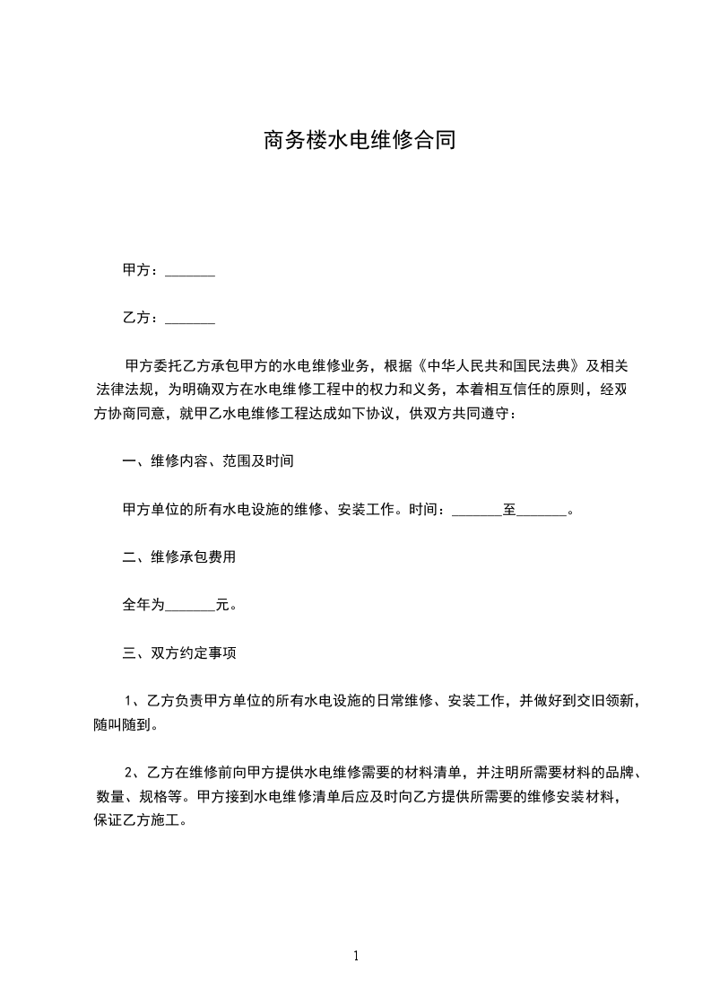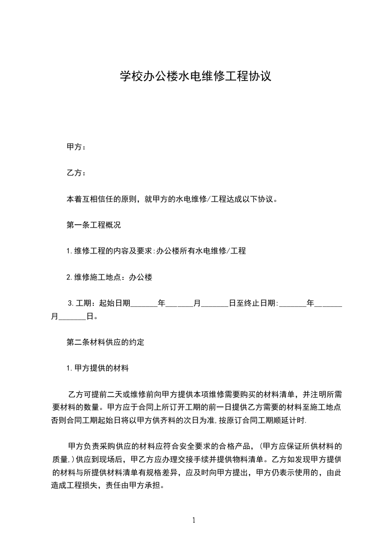 本着互相信任的原则,就甲方的水电维修/工程达成以下协议。