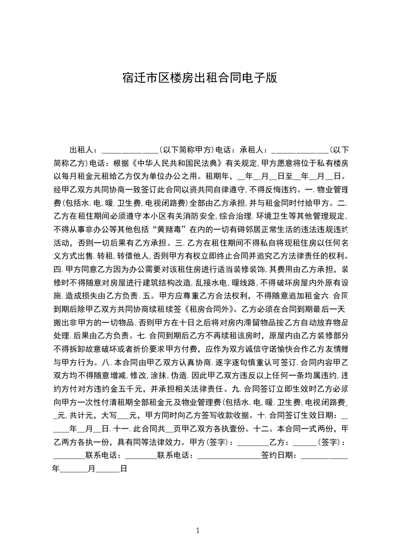 1.本转租房屋系供商业营业之用。