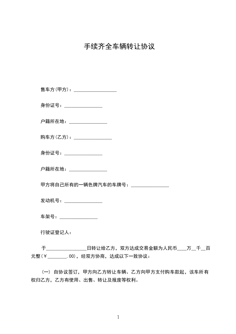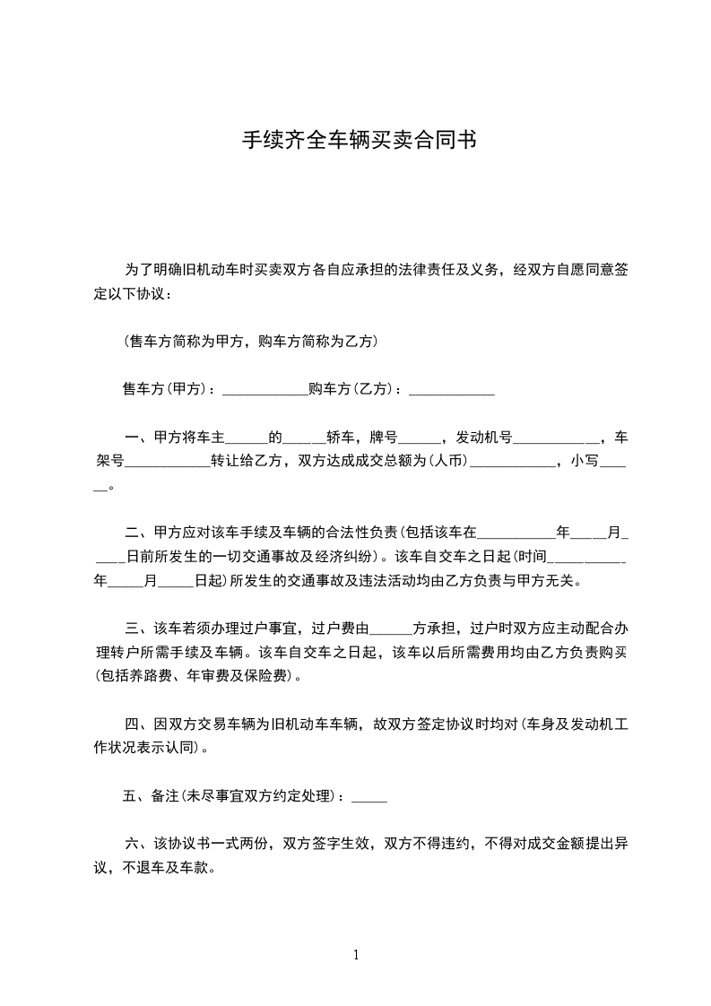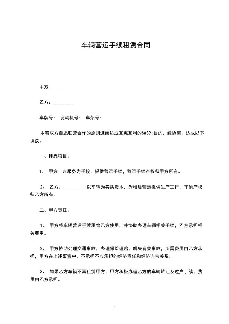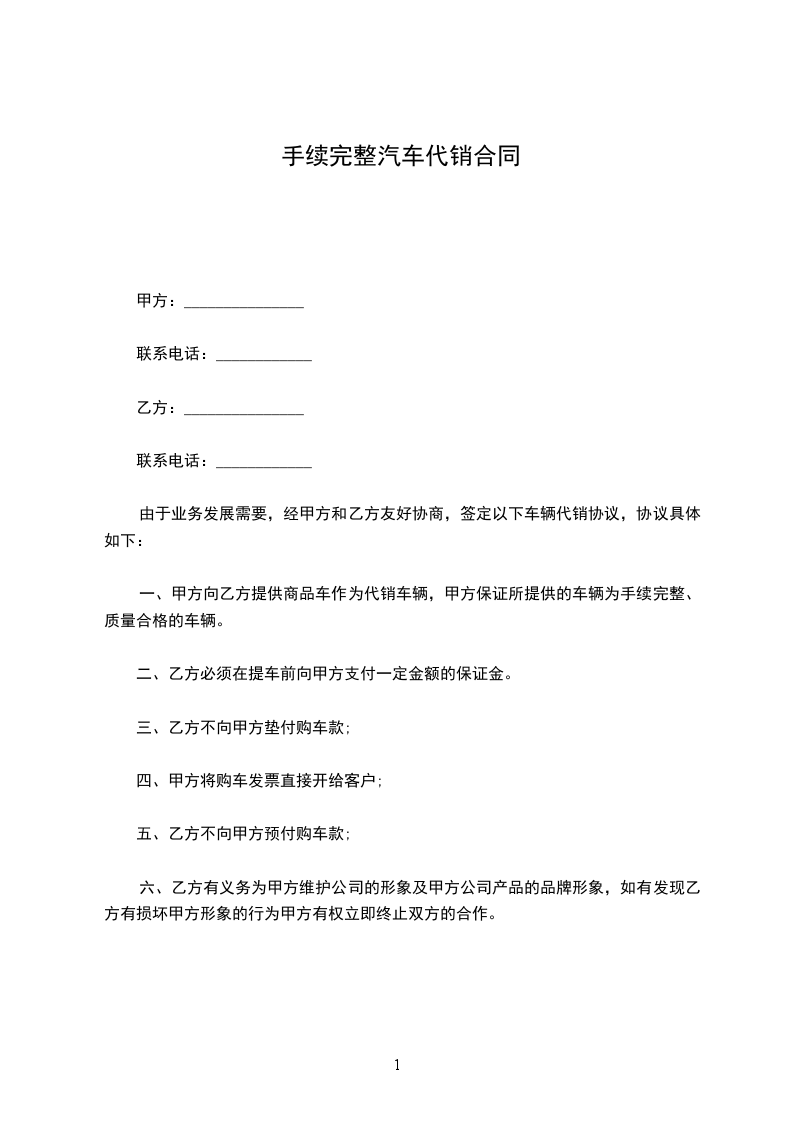 一、甲方向乙方提供__________辆商品车作为代销车辆,甲方保证所提供的车辆为手续完整、质量合格的车辆。