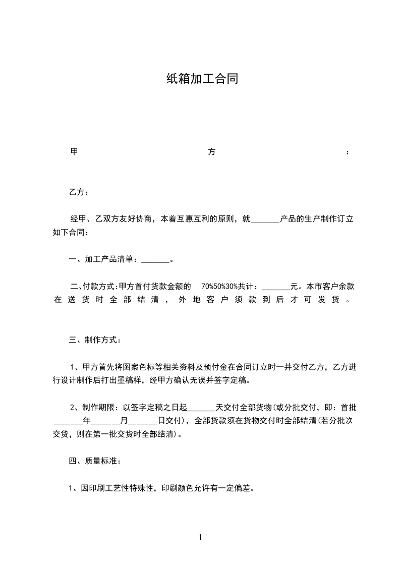 经甲、乙双方友好协商,本着互惠互利的原则,就_______产品的生产制作订立如下合同:
