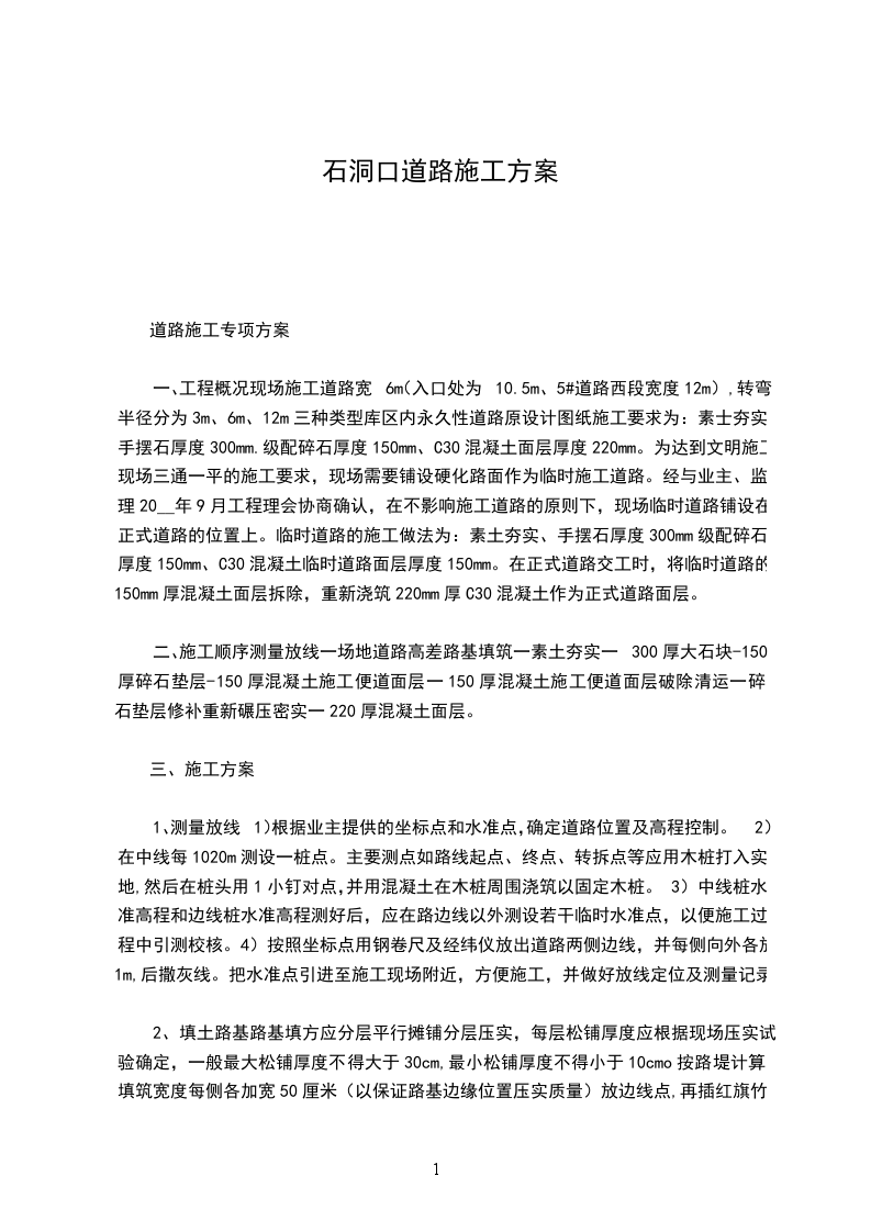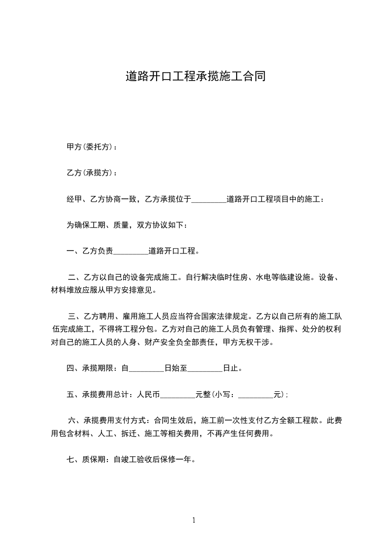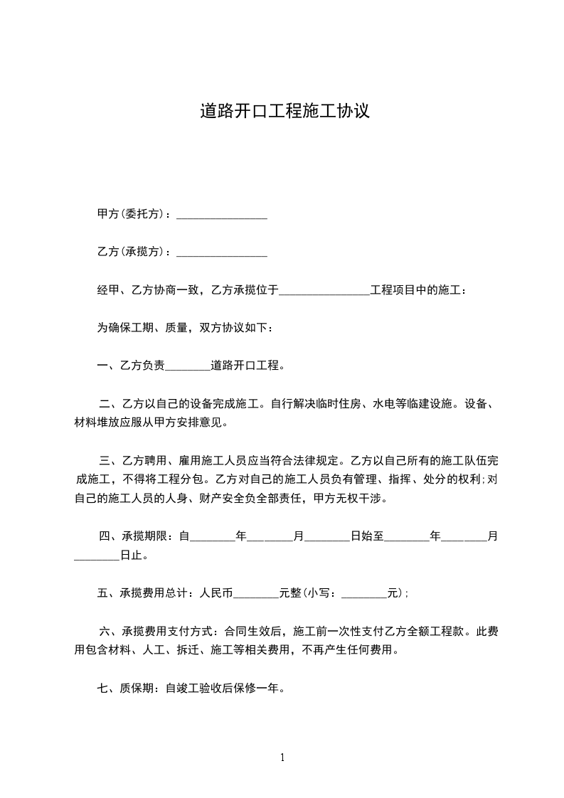 一、乙方负责_________道路开口工程。